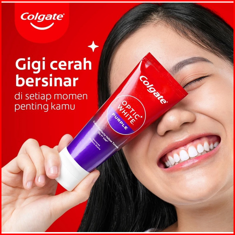 Colgate Optic White Purple Pasta Gigi Whitening Pembersih Plak Kekuatan Pencerah Micro Polishing Crystal