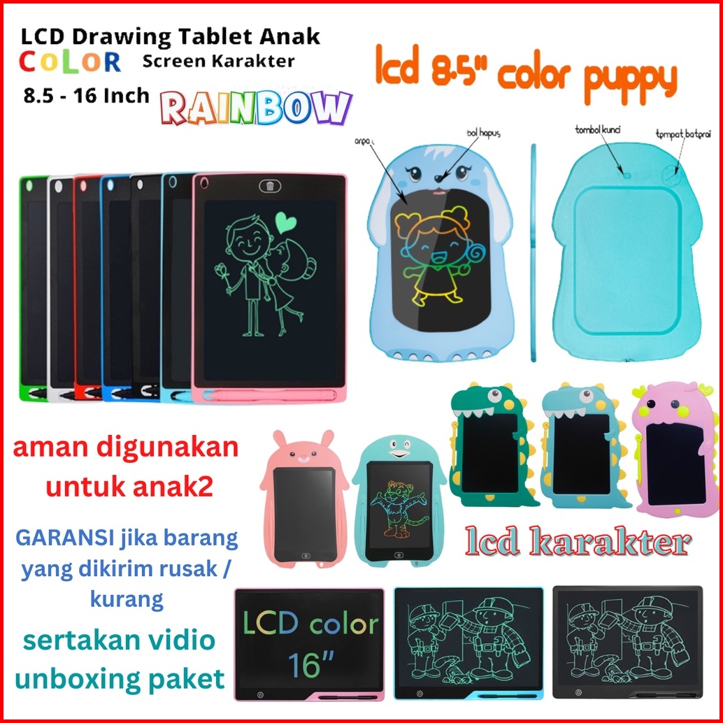 Papan Tulis Untuk Gambar Hapus Tulis Anak Lcd Drawing Tablet Led 8.5 12 Inch 16 Inch Dinosaurus Rabbit Penguin With Styl