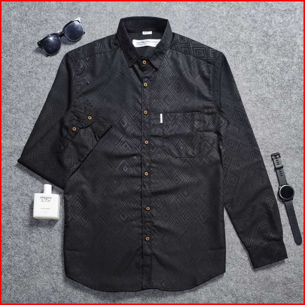 Detak Original Kemeja Embos Sultan Pria Lengan Panjang Hitam Tofubox Casual Slimfit