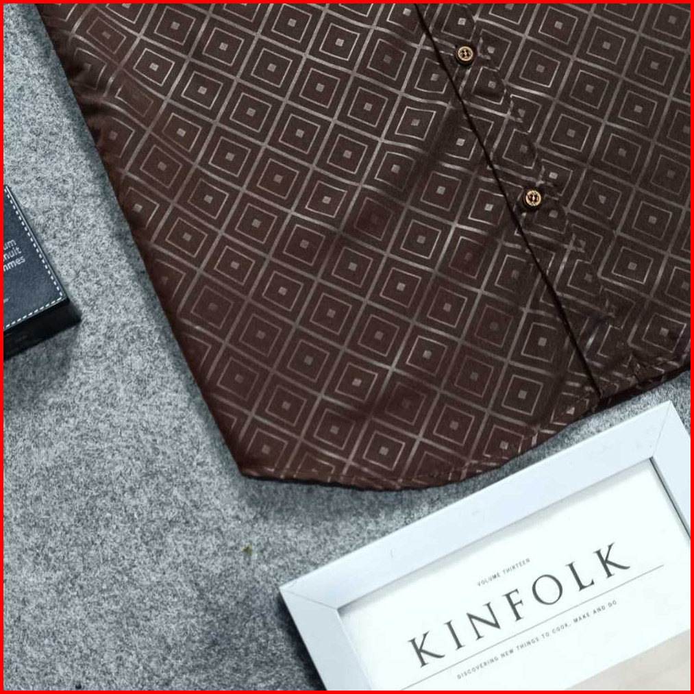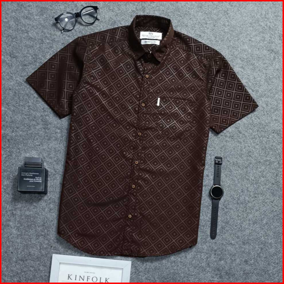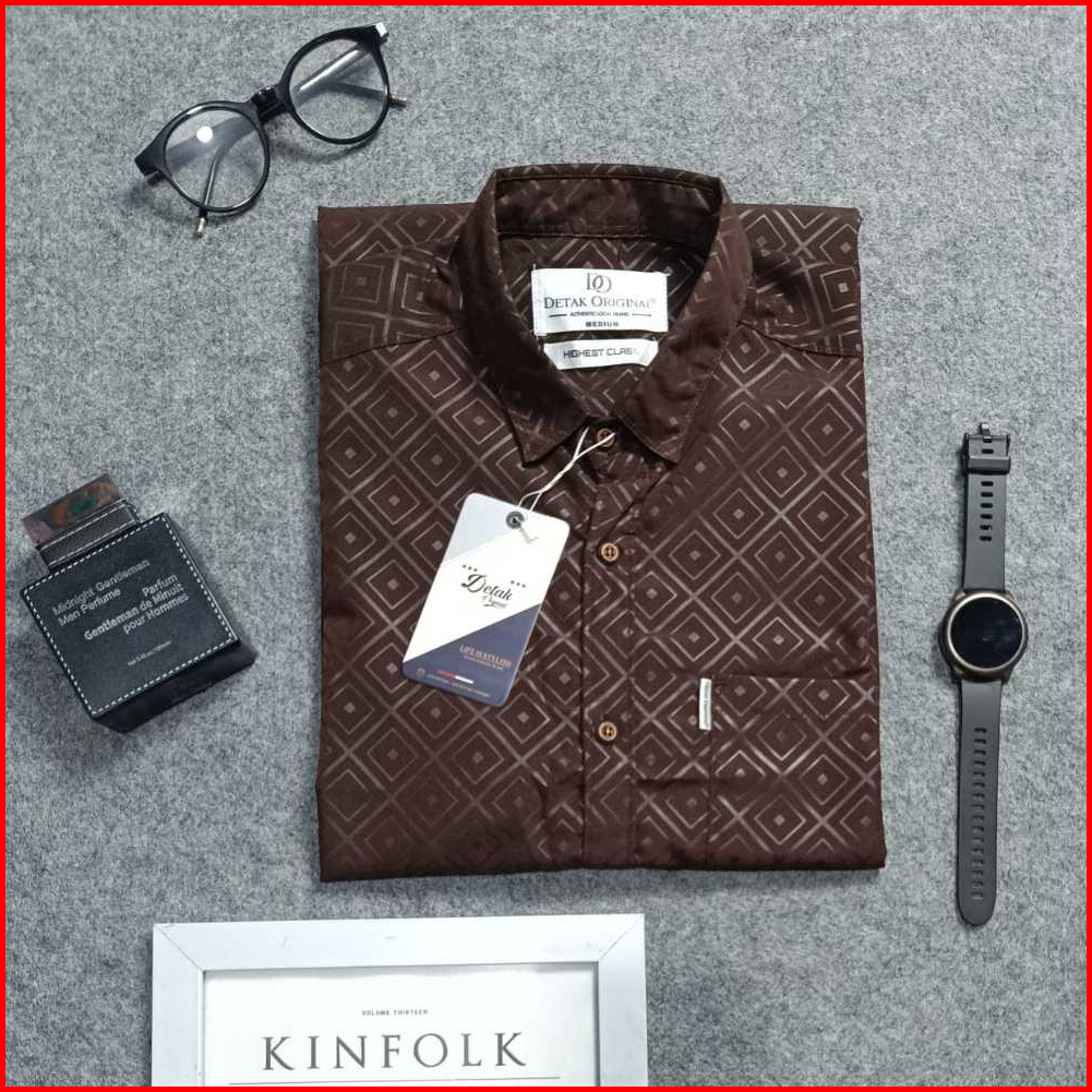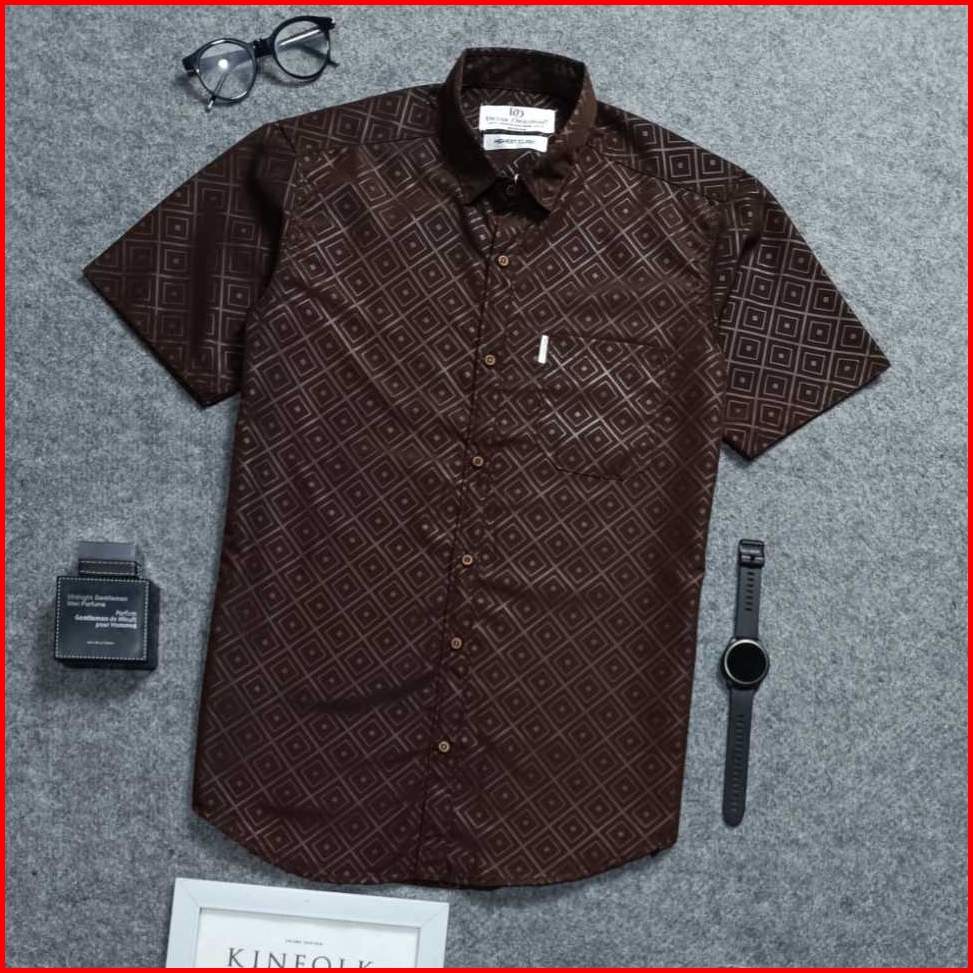 Detak Original - Kemeja Embos Pria Lengan Pendek Motif Diamond Coklat