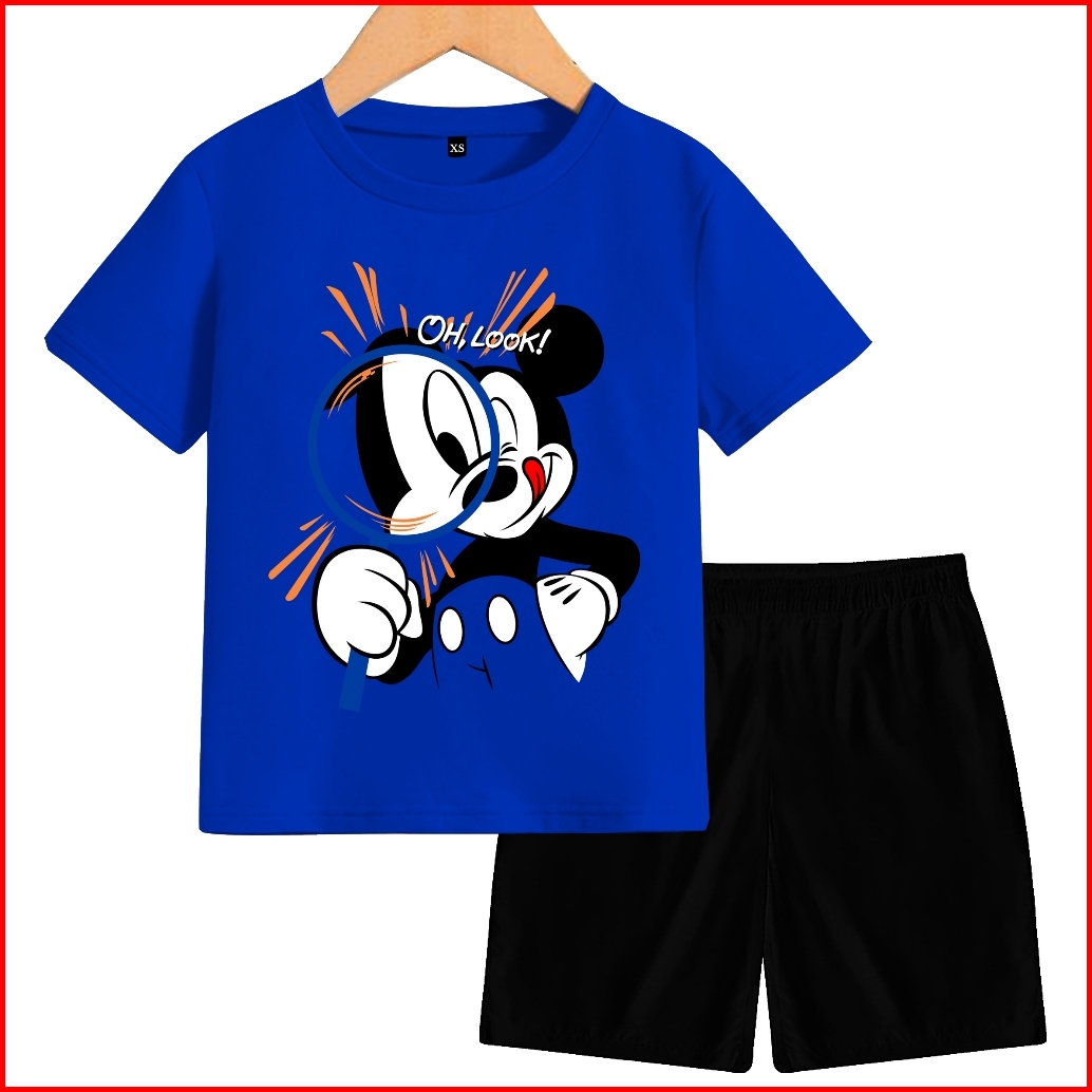 Setelan Anak Anak Motif Mickey Mouse Lengan Pendek Celana Pendek Bahan Katun
