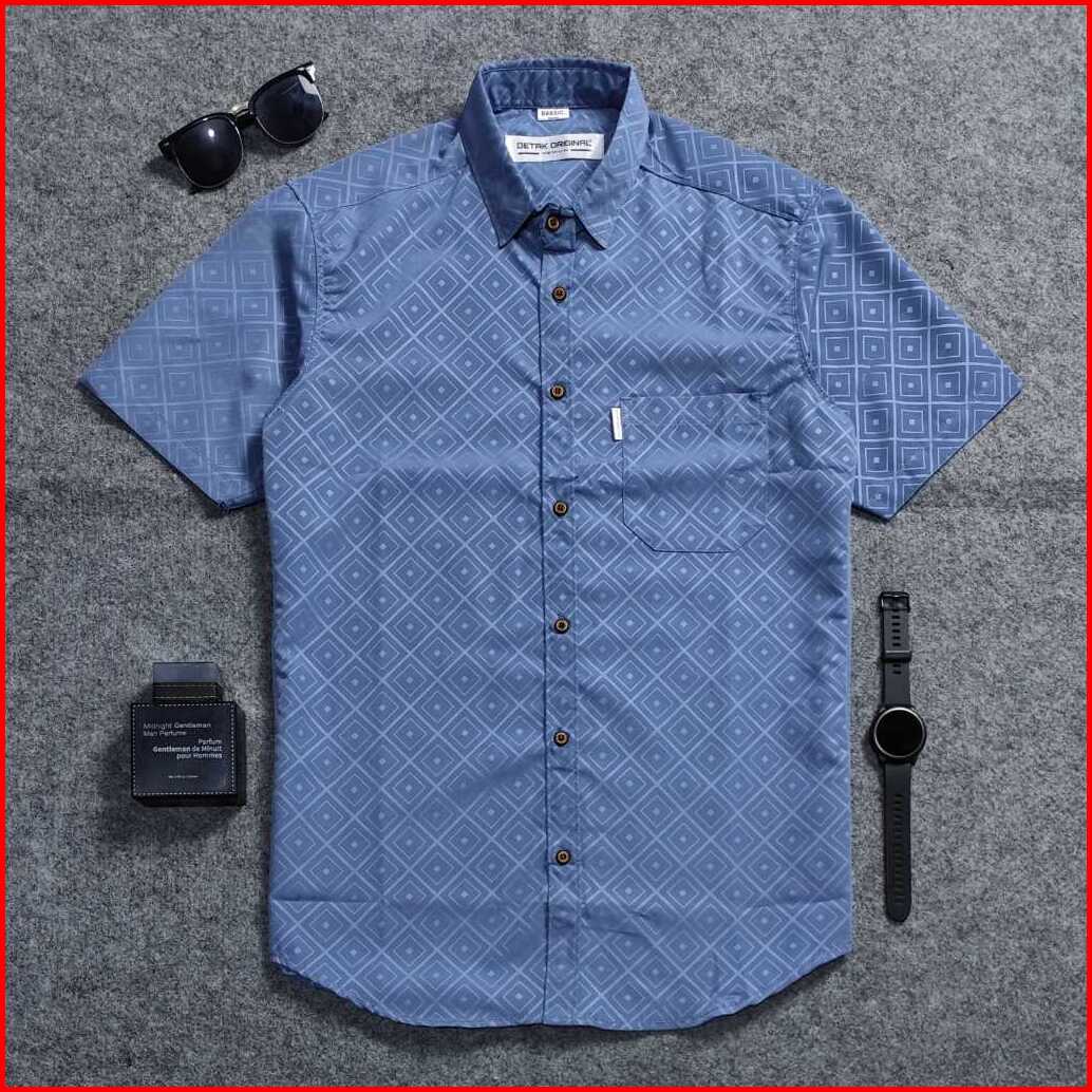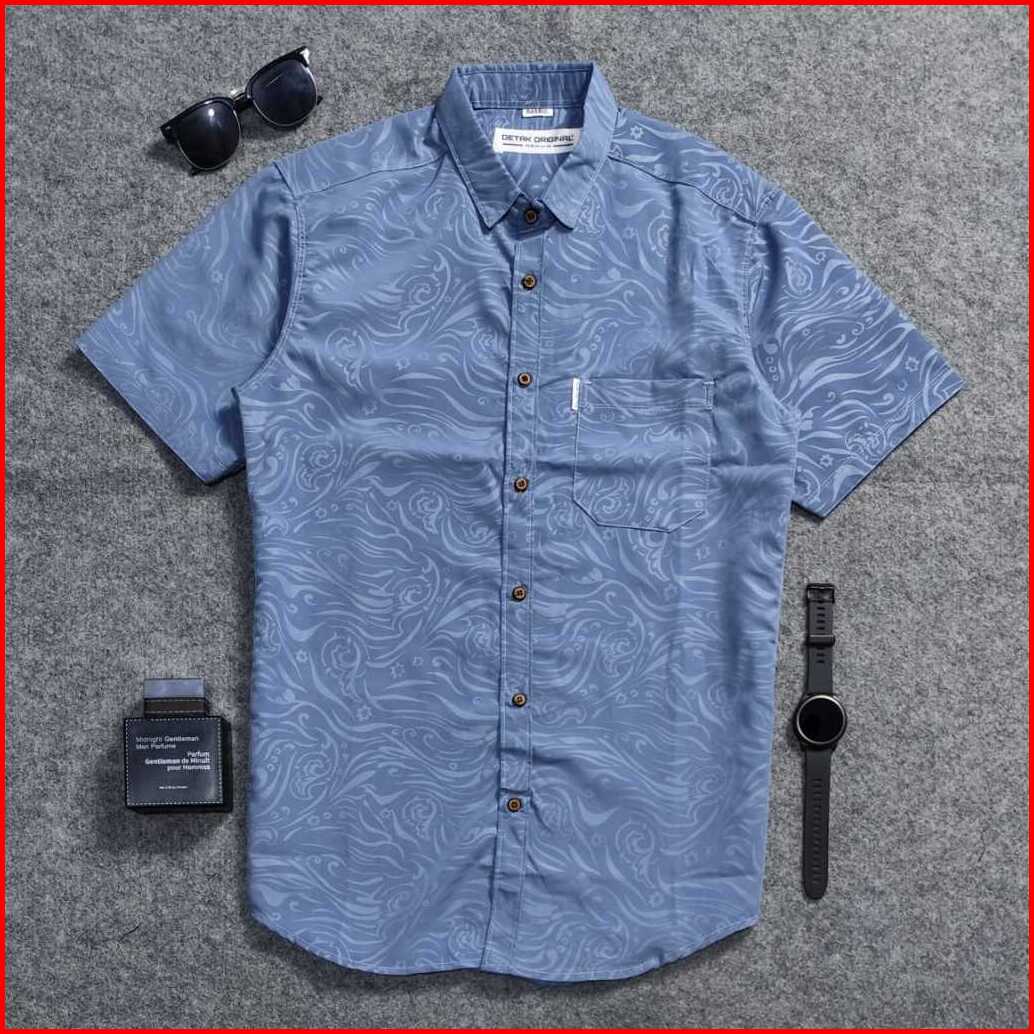 Detak Original Kemeja Embos Sultan Pria Lengan Pendek Denim Yakuza Casual Slimfit