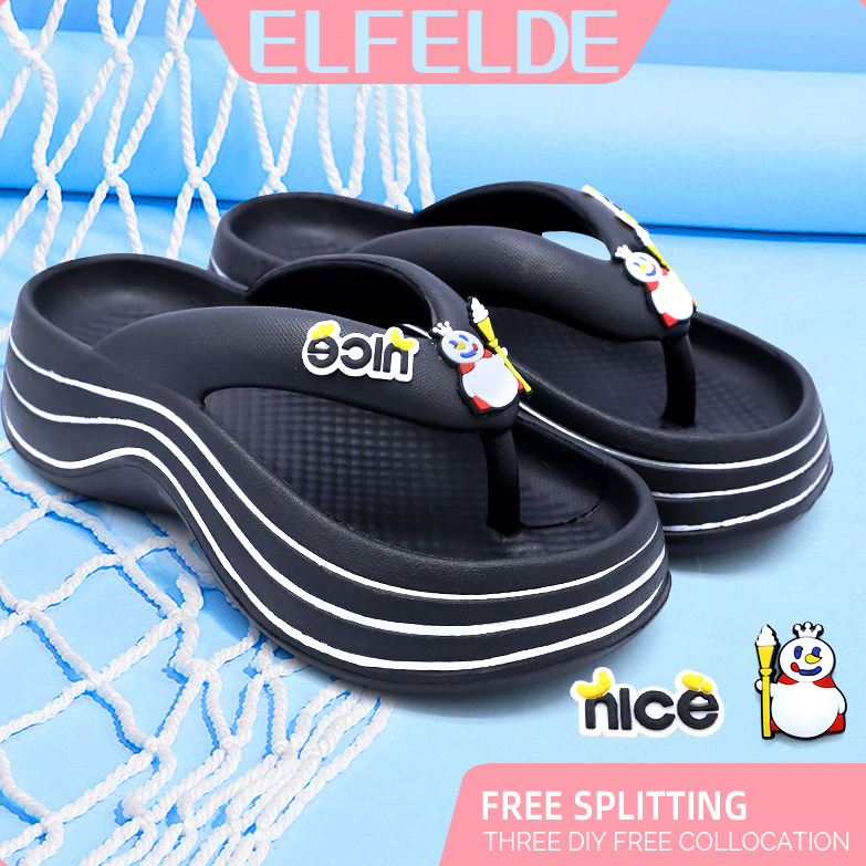 ELFELDE Sandal Jelly Wanita Wedges Kekinian Korea Sandal Jepit Wanita Sandal Wanita Tinggi