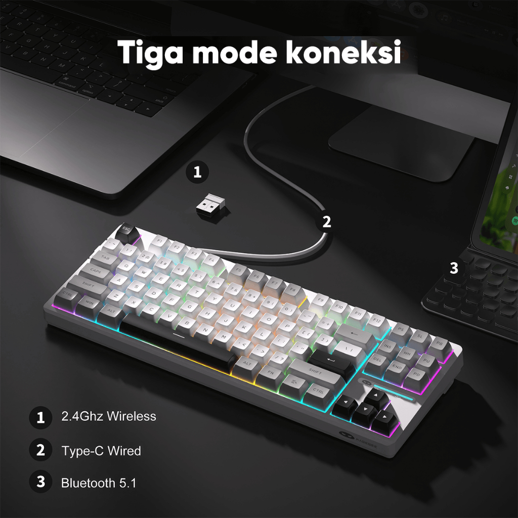 Magegee Mechanical Keyboard Wireless Bluetooth 2.4G 3 Models Gaming RGB Lights 87 PERSEN Layout Light87