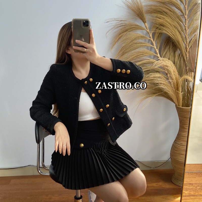 BT-3291 Blazer Tweed Hitam Model Simple Elegant Gaya Klasik