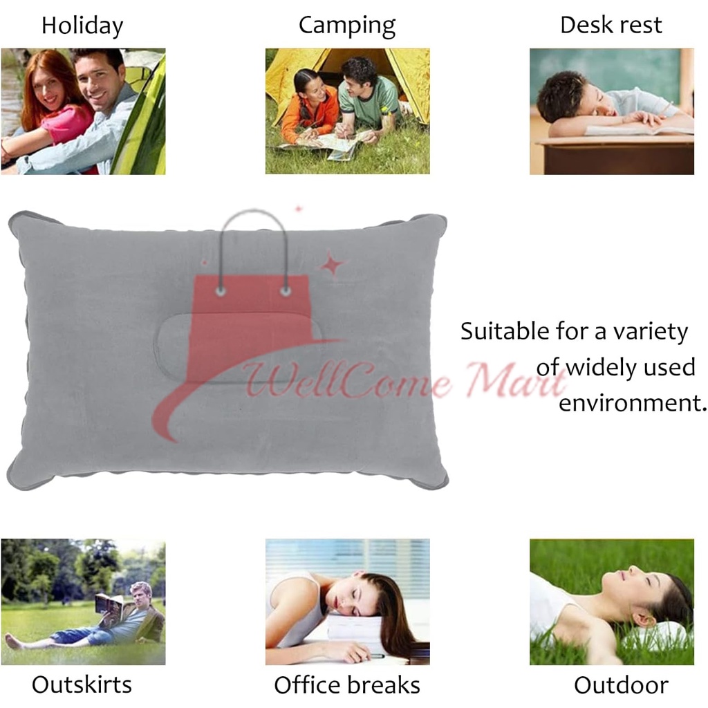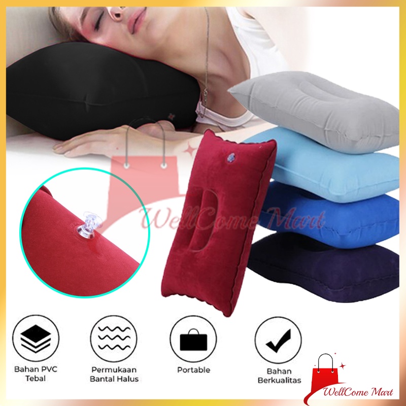 2PCS Bantal Angin Tiup / Bantal Angin Tiup Inflatable Ringan / Bantal Angin Tiup Vinyl Bludru Travel Pillow Murah Gratis