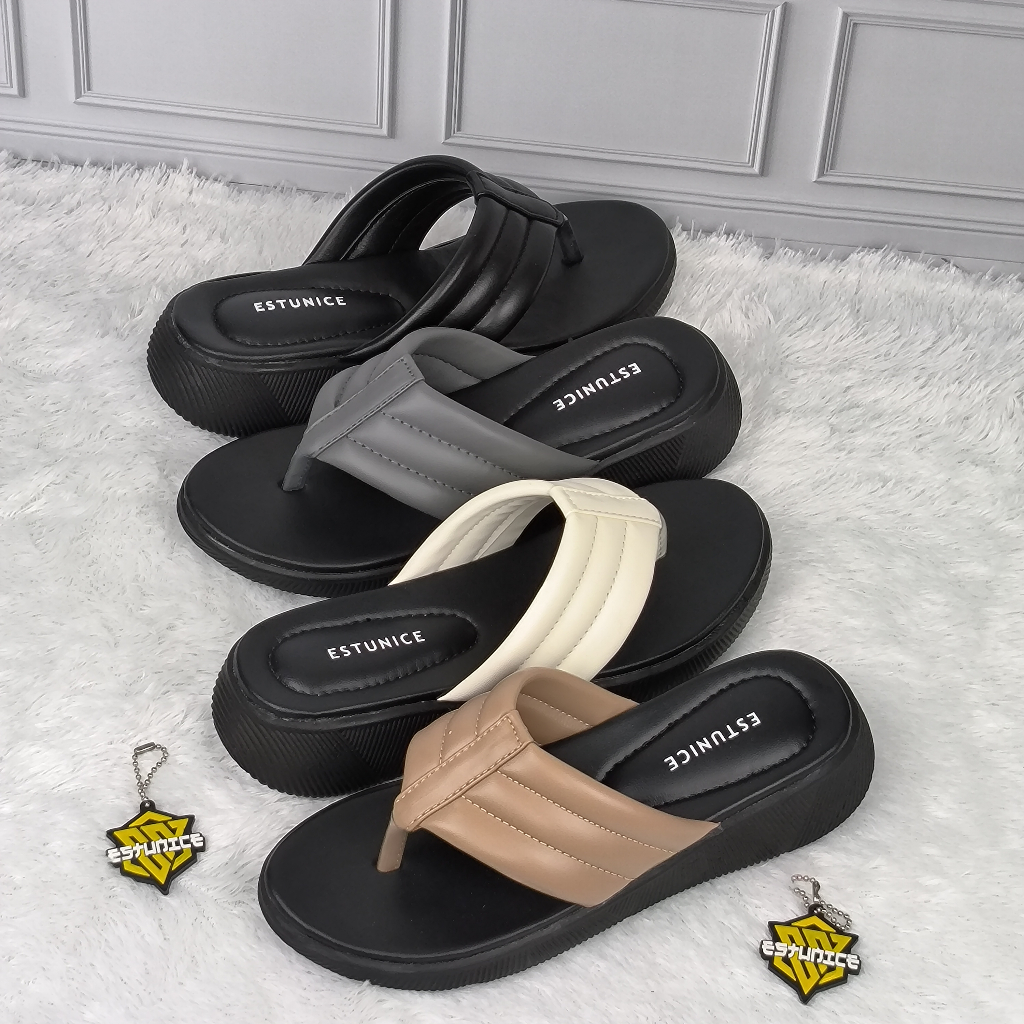Estunice Sandal Jepit Wanita Sendal Slop Wedges Kekinian - Jannie