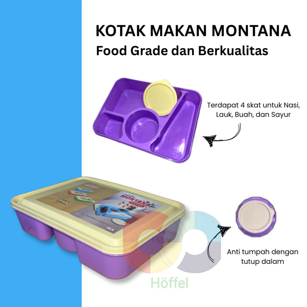 Kotak Makan Lunch Box 4 Sekat Anti Tumpah Food Grade - Plastik Murah Murah Gratis Ongkir