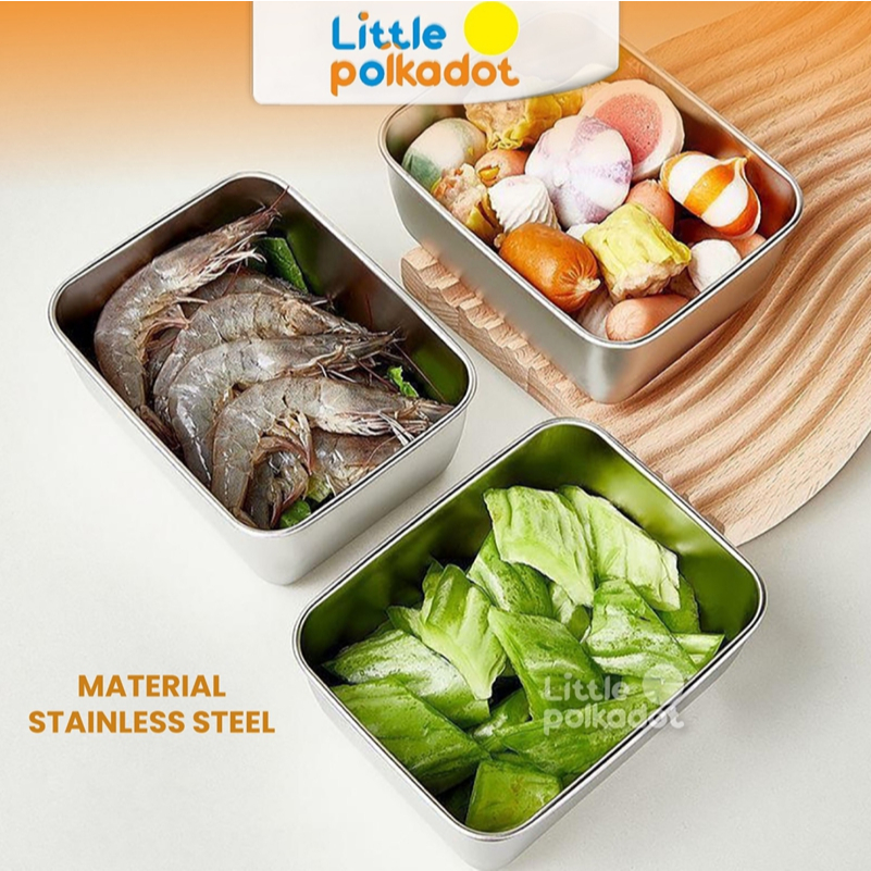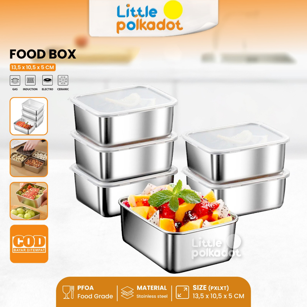 Littlepolkadot 6PCS Tempat Wadah Makanan Box+Tutup Kontainer Makanan Sayuran Food Box Stainless Steel Food Storage conta