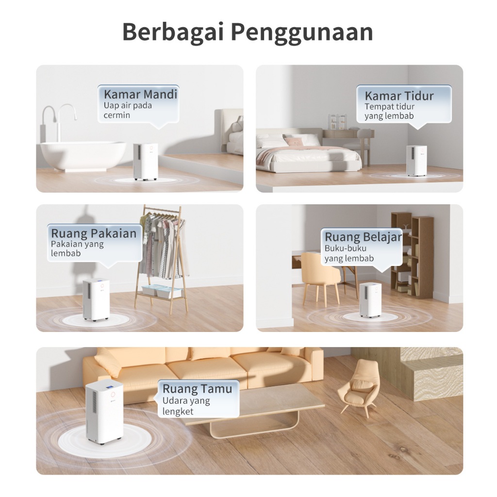 Simplus Dehumidifier Kompresor 2L Dehumidify up to 12L/Day 3 Modes Touch Operation