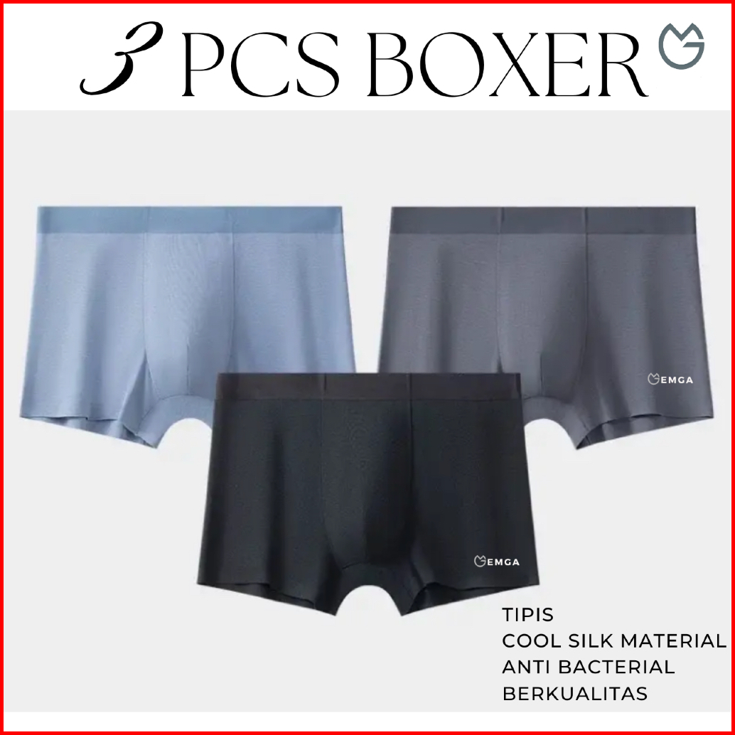 Celana Dalam Pria Boxer Isi 3 Emga Sb1b Cool Silk Seamless Celana Dalam Pria Pakaian Dalam Breathable Ultra Thin Tipis C