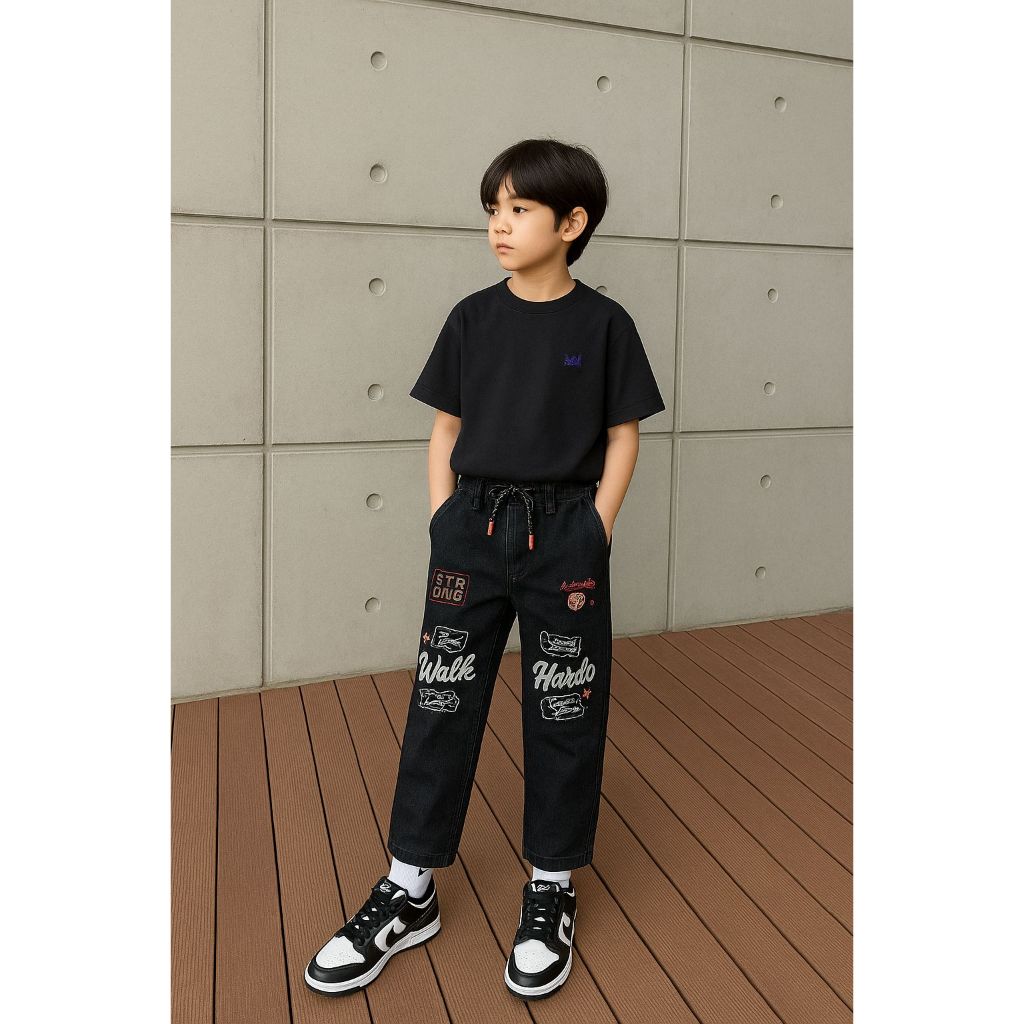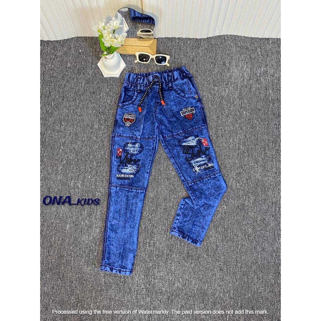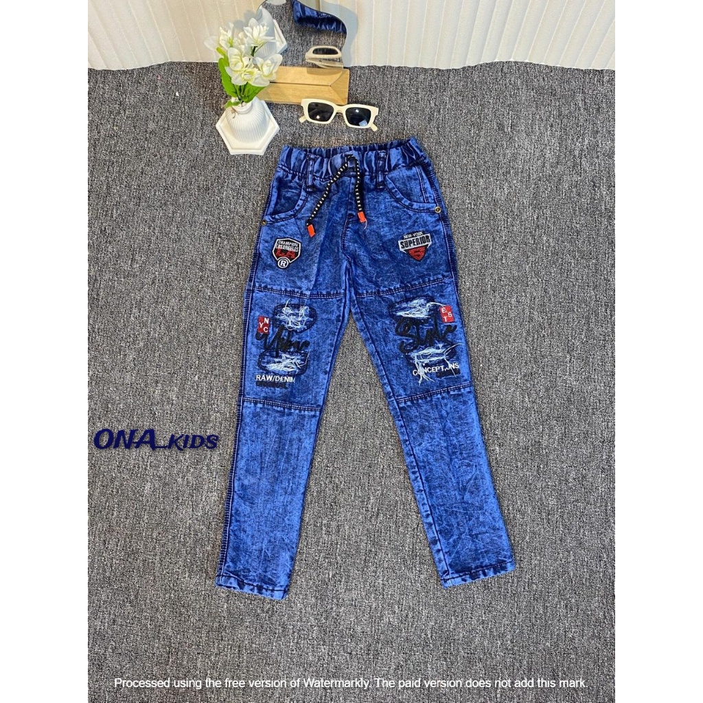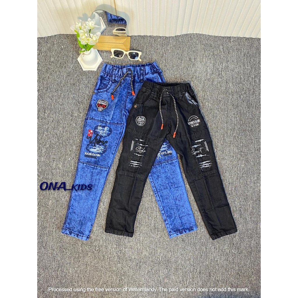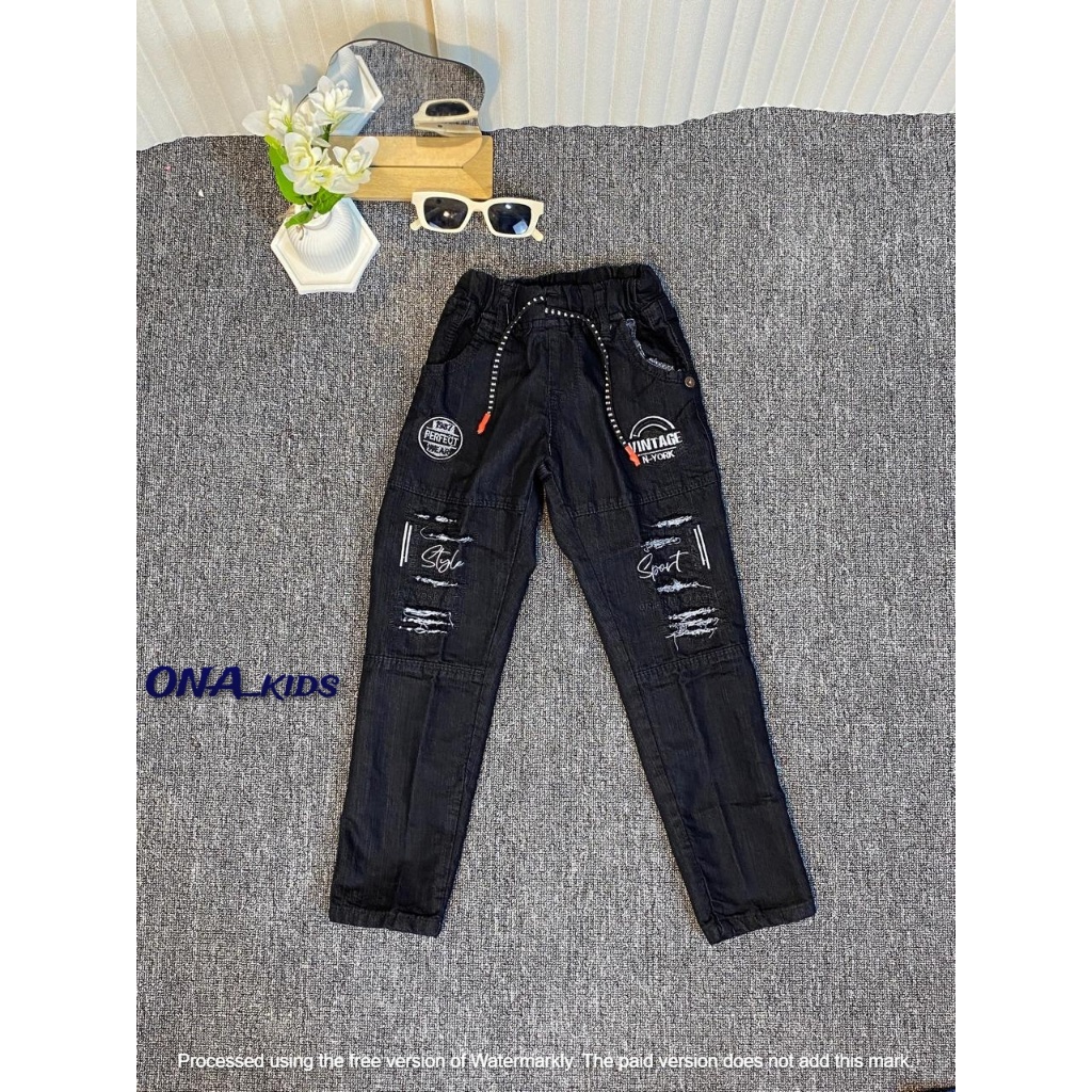 Celana Jeans Sobek Denim Anak Laki Laki Usia 7-12 Tahun