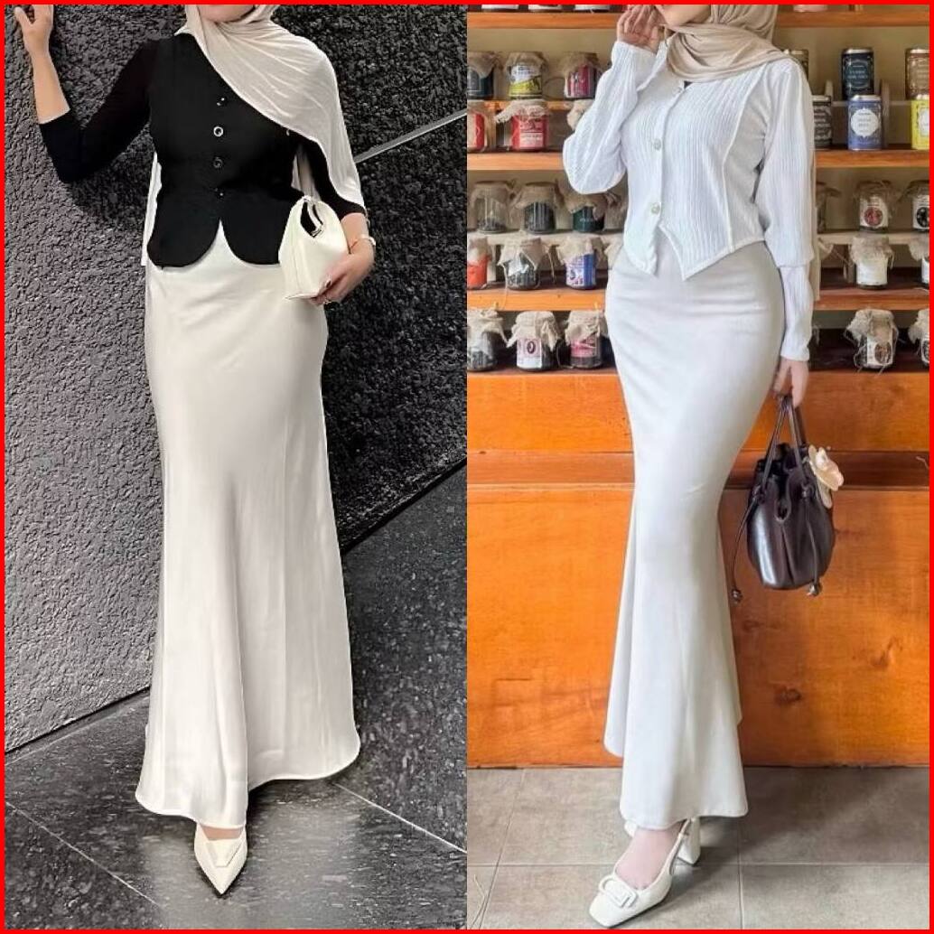 Rok Panjang Wanita Scuba Mermaid Maxi Flare Premium Muslim Kerja Pesta