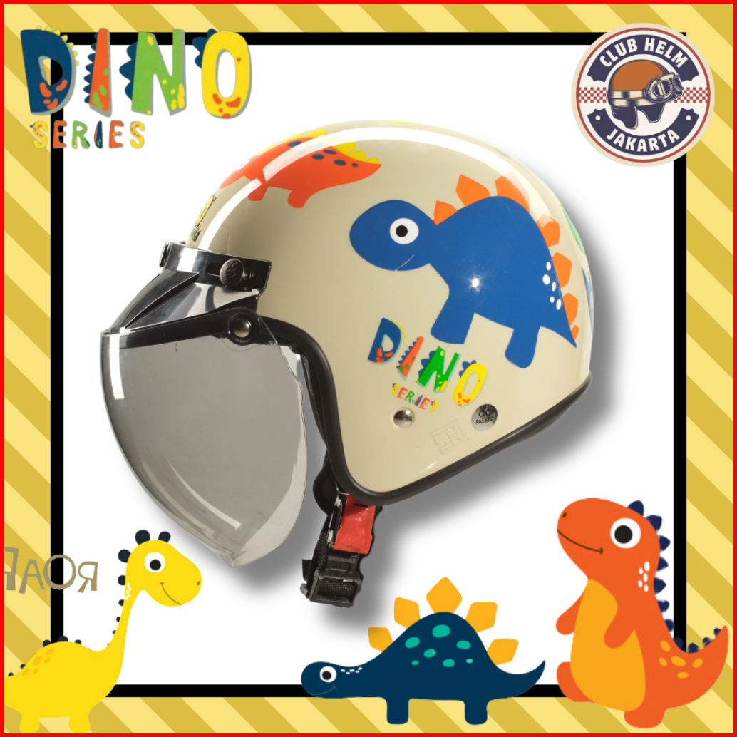 Helm Bogo Dino Dinosaur Dinosaurus Karakter Retro Anak Cowo Cewe Lucu Premium Sni
