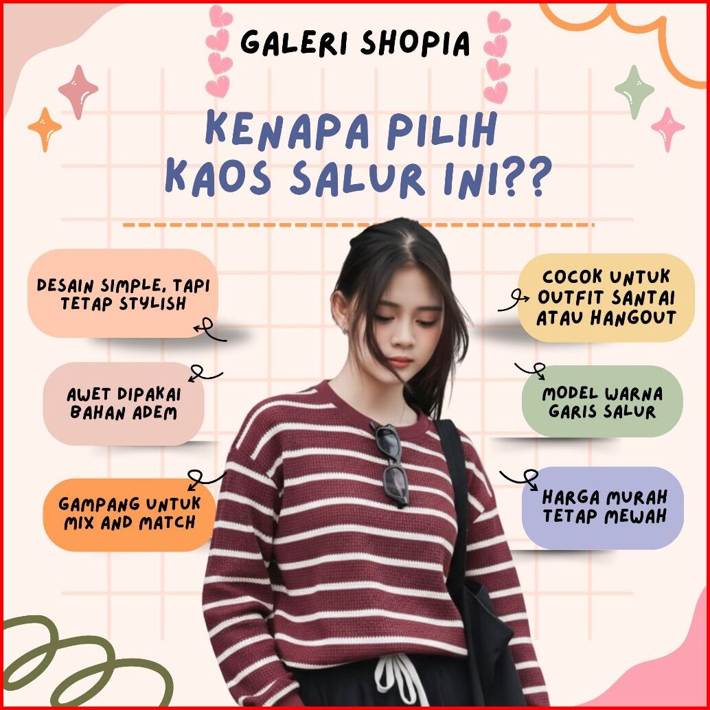 Hitam Garis Putih, Maroon Garis Putih, Coklat Garis Putih, Bata Garis Putih, Putih Garis Hitam, Denim Garis Putih, HIjauBotolGarisPutih, Hitam x Putih, Coksu Garis Putih, Hazelnut Garis Putih, Abu Misty GarisPutih, Mint Garis Putih, Wardah Garis Putih, Navy Garis Putih, Taro Garis Putih, Mocca Garis Putih, Mocca Garis Hitam, Salur2 Pink, Salur2 Latte, Salur3 Putih Pink, Salur3 Putih Abu, Salur3 Putih Biru, Salur3 Hitam Putih, Army Garis Putih, Pink Garis Putih