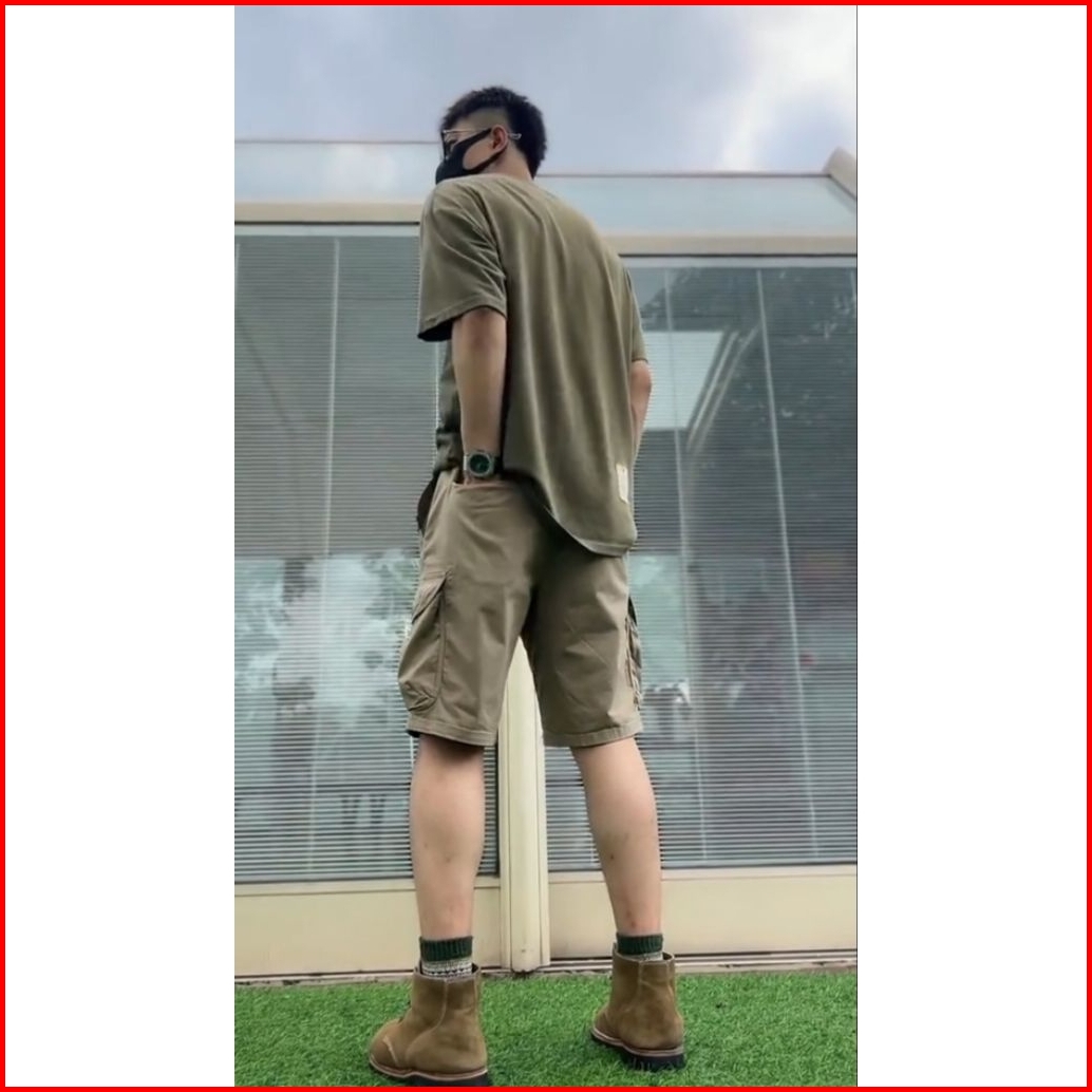Celana Cargo Pendek Button Zip Celana Outdoor Katun Combat