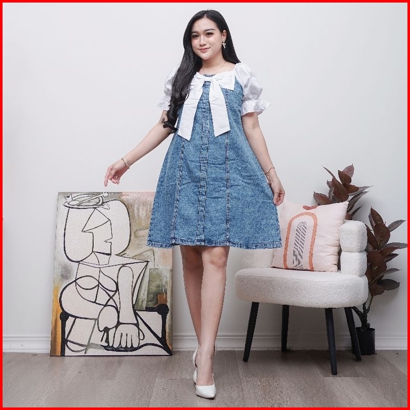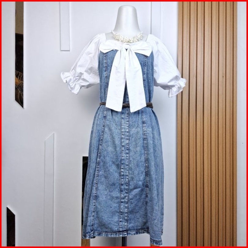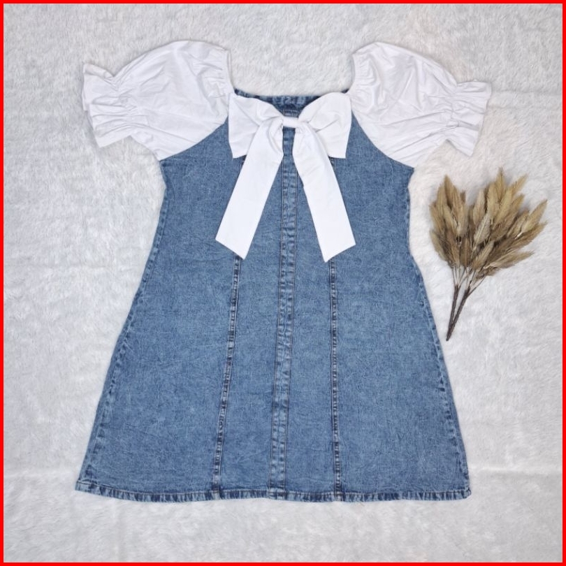 Dress Jeans Wanita Kombinasi Katun Dress Pita
