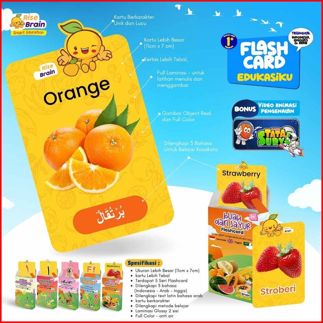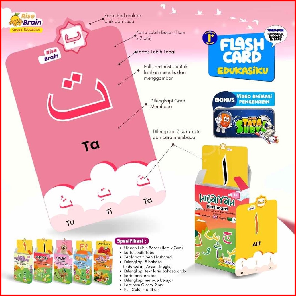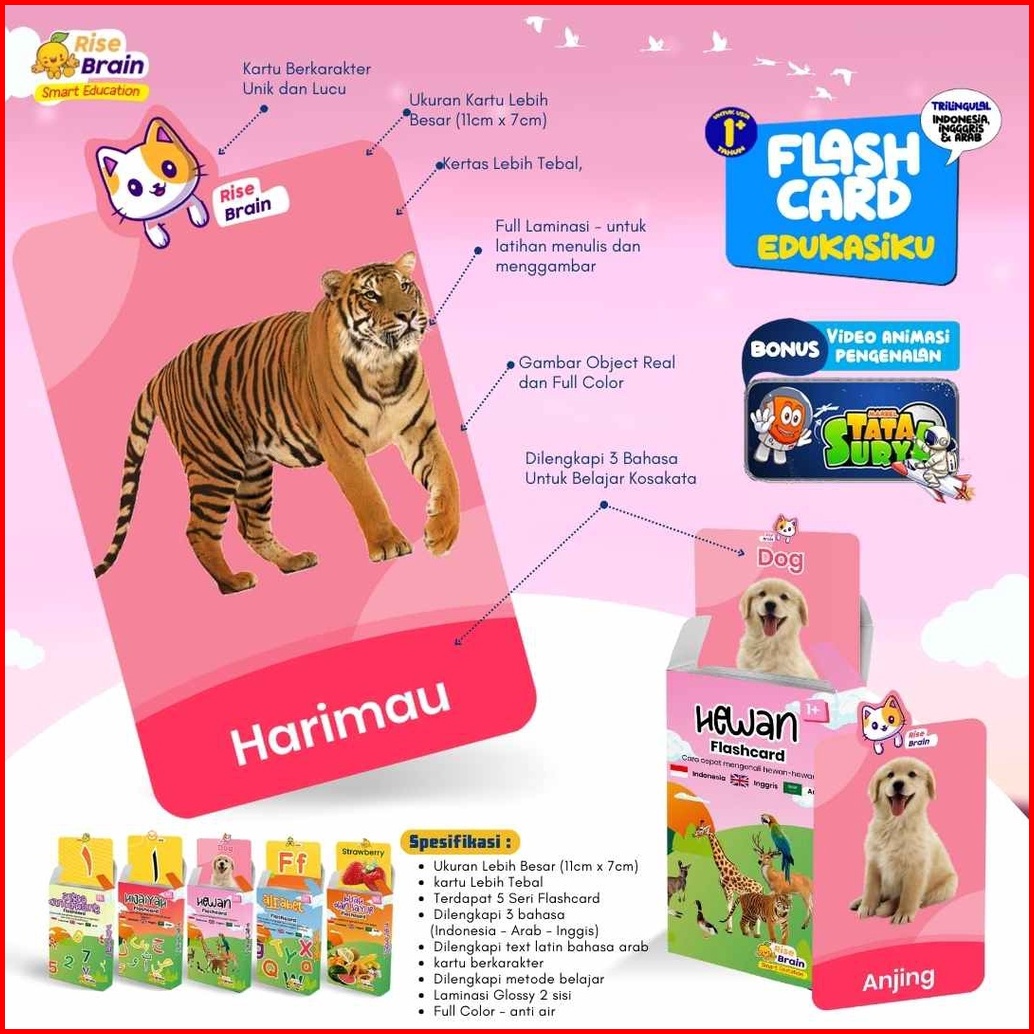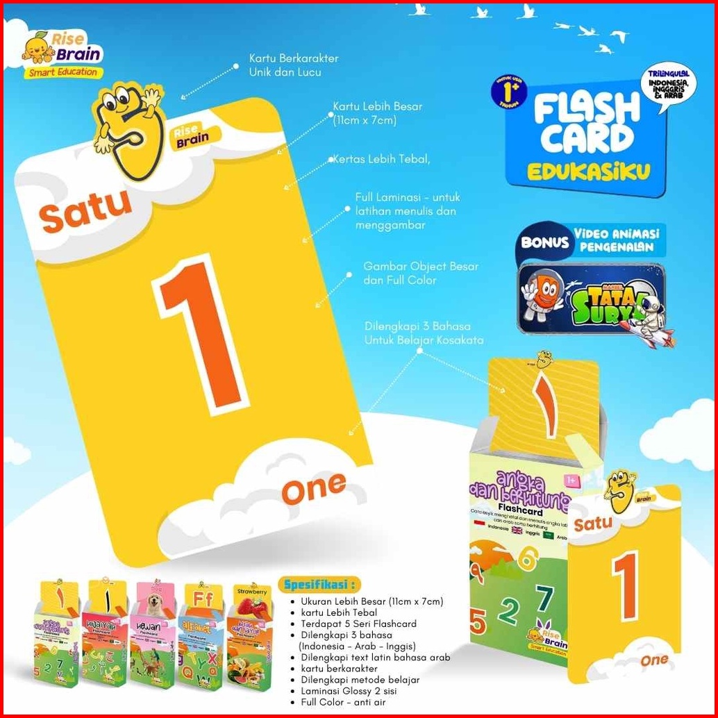 Paket Flash Card 5 Seri Bonus Tablet - Flash Card Edukasi Anak Rise Brain Smart Education Buku Pintar Untuk Pembelajaran
