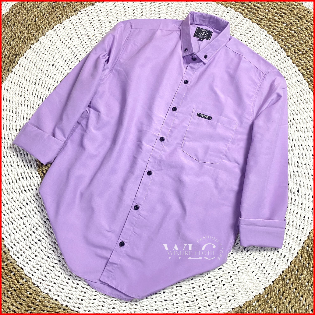 Kemeja Polos Pria Warna Lilac Panjang Casual Terbaru Size M L Xl Xxl