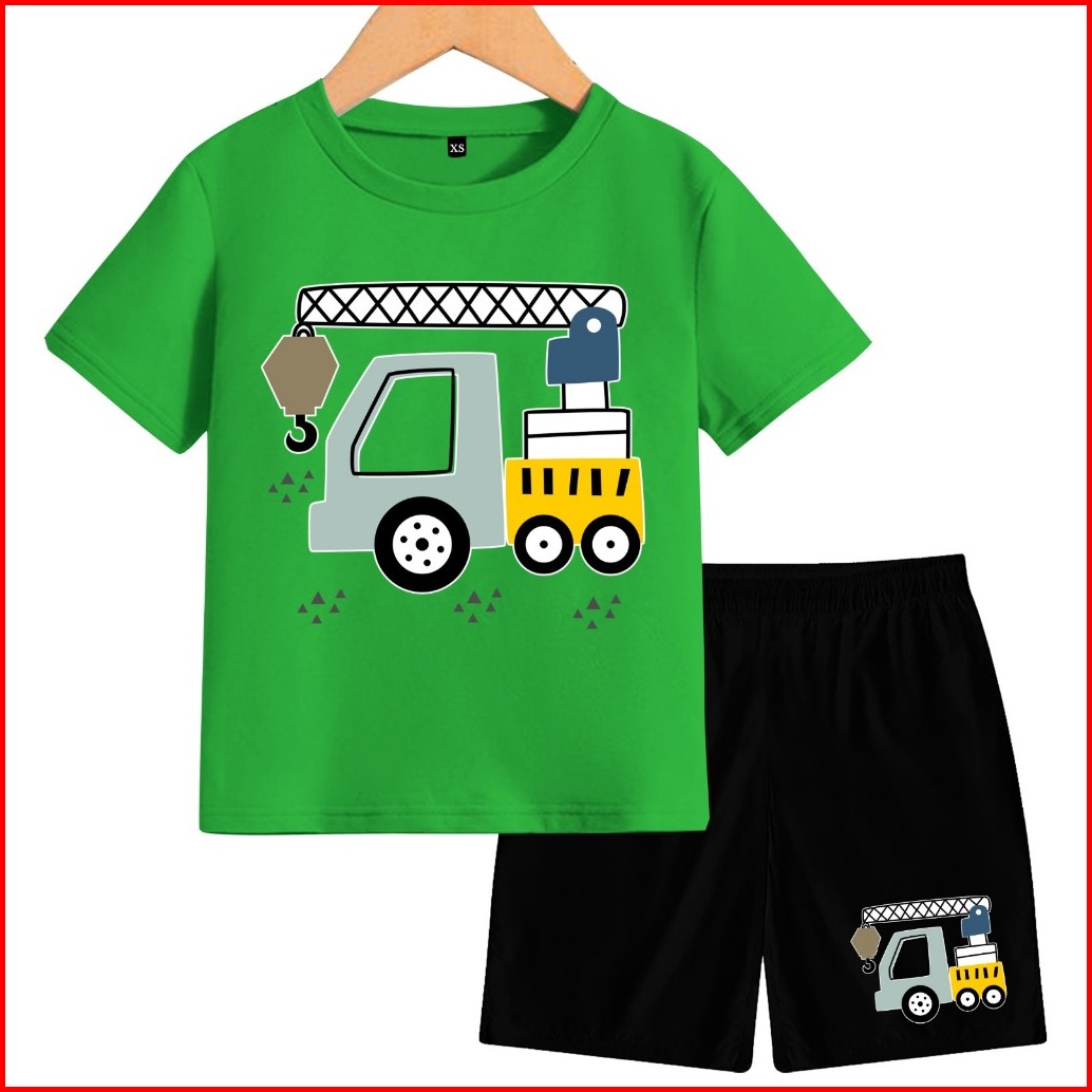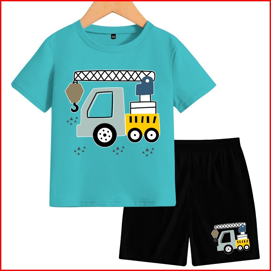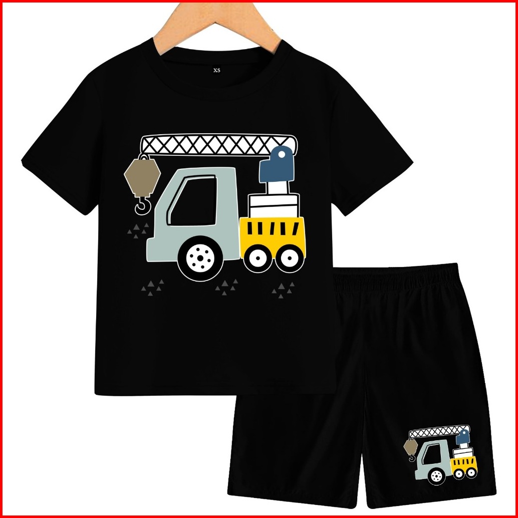 Setelan Anak Anak Motif Boom Truck Usia 1-13 Tahun Dtf Bahan Adem Dan Halus