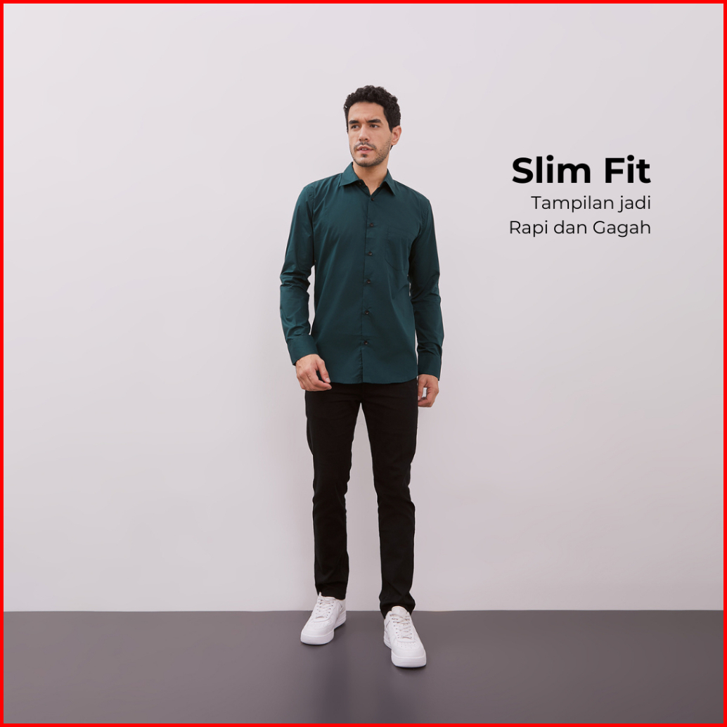 Almano Devin Shirt Ls Dark Green Kemeja Pria Slim Fit Polos Panjang Katun Hijau Tua