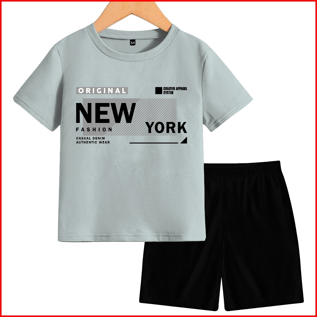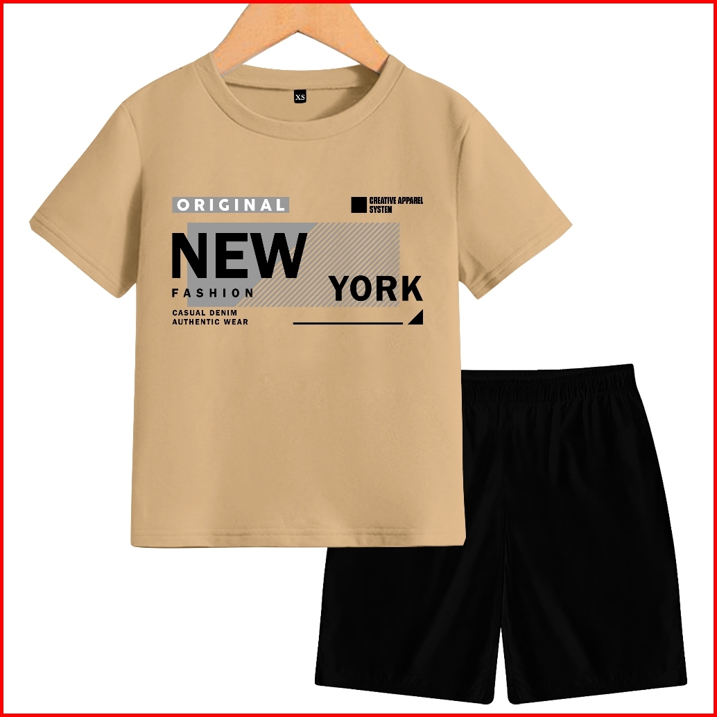 Setelan Anak Anak Motif New York Lengan Pendek Celana Pendek Cowok