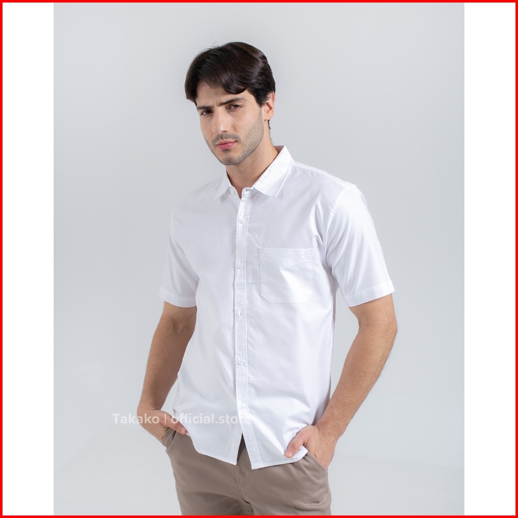 Takako - Kemeja Pria Putih Lengan Pendek Katun Oxford