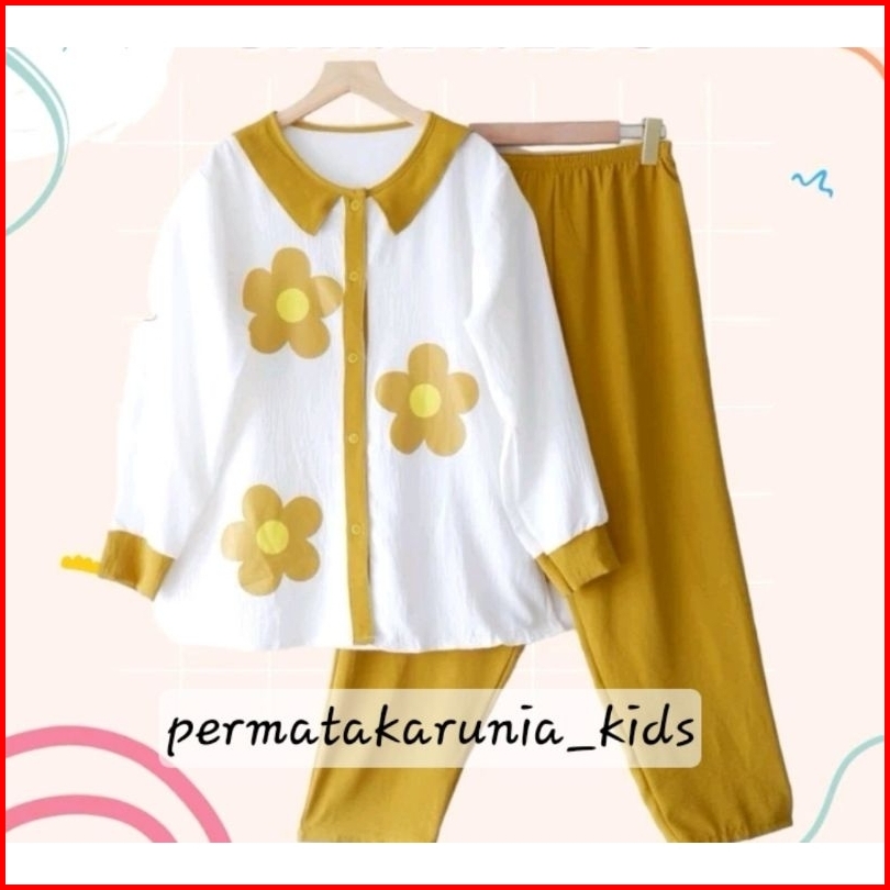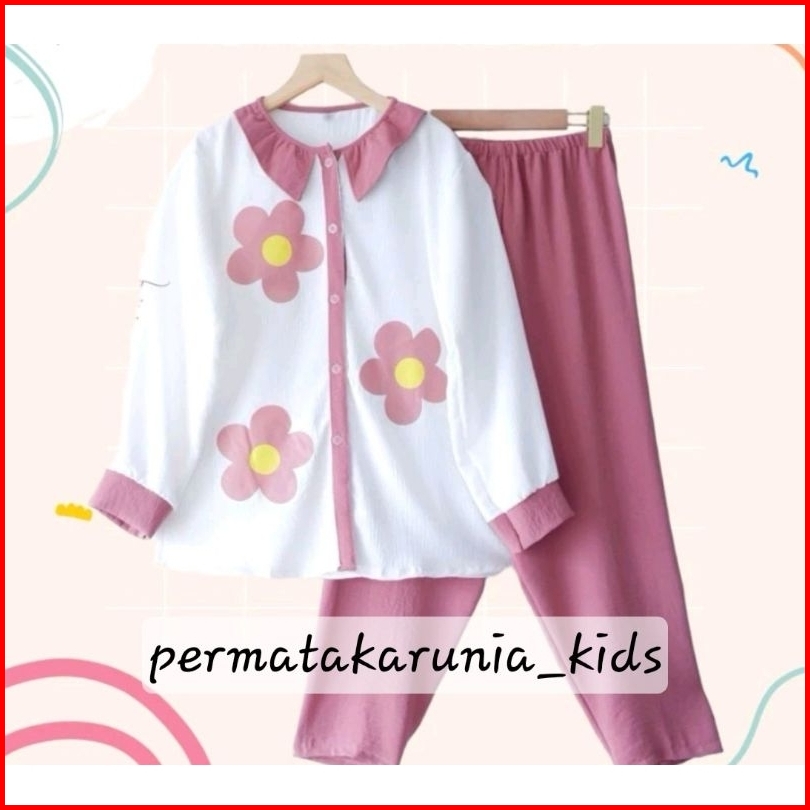Kancing Aktif Mentari Set Kids 3thn-13thn Crinkle Printing Setelan Mentari Setelan Bunga One Set Polos Kombinasi Ootd Se