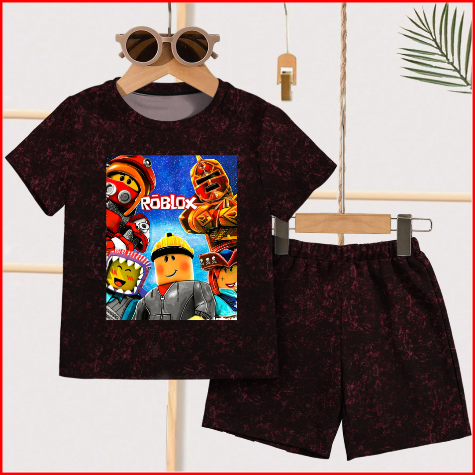 Setelan Anak Anak Motif Roblox Lengan Pendek Bahan Babyterry Umur 1-13 Tahun Baju Lengan Pendek Celana Pendek