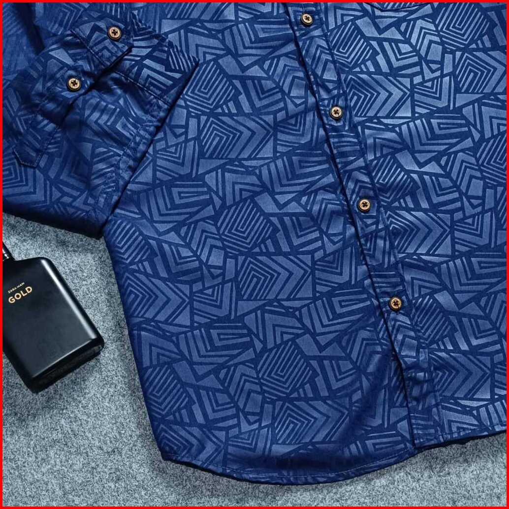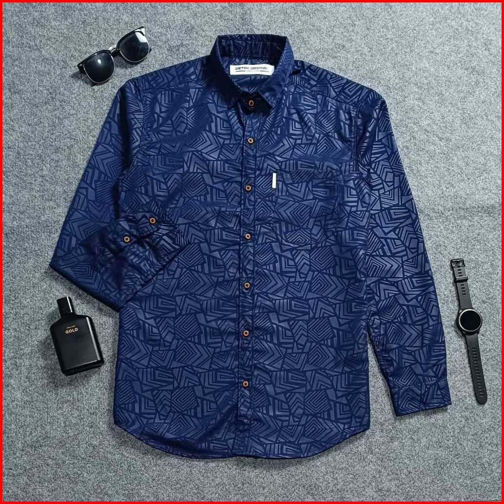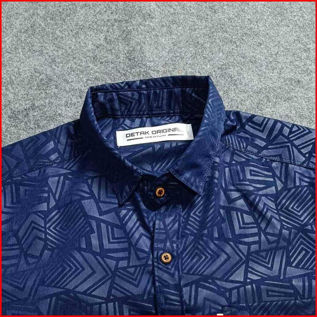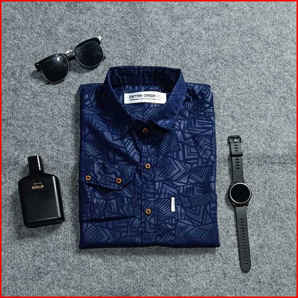Detak Original Kemeja Embos Sultan Pria Lengan Panjang Navy Etnik Casual Slimfit