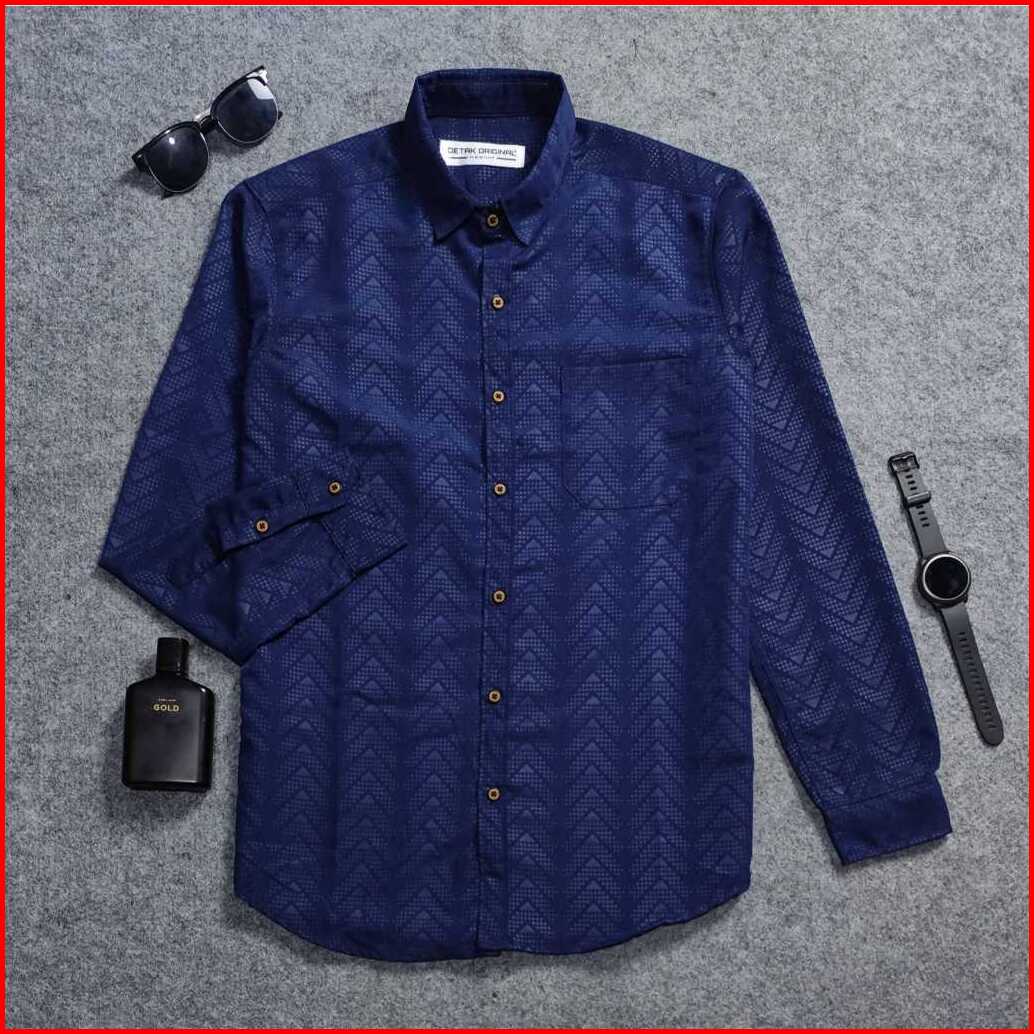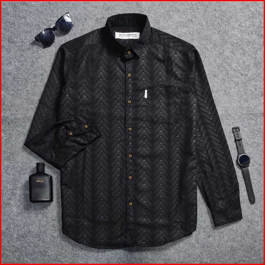 Detak Original Kemeja Embos Sultan Pria Lengan Panjang Motif Piramid Kasual Slim-fit