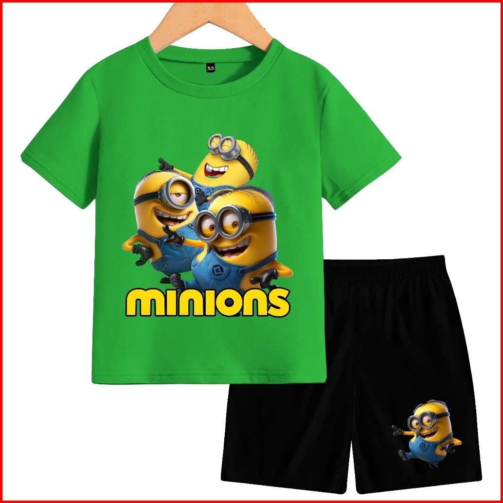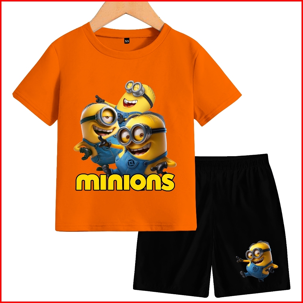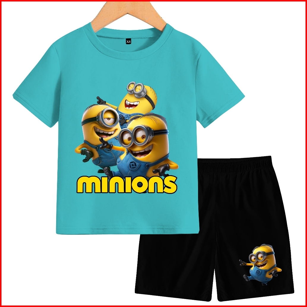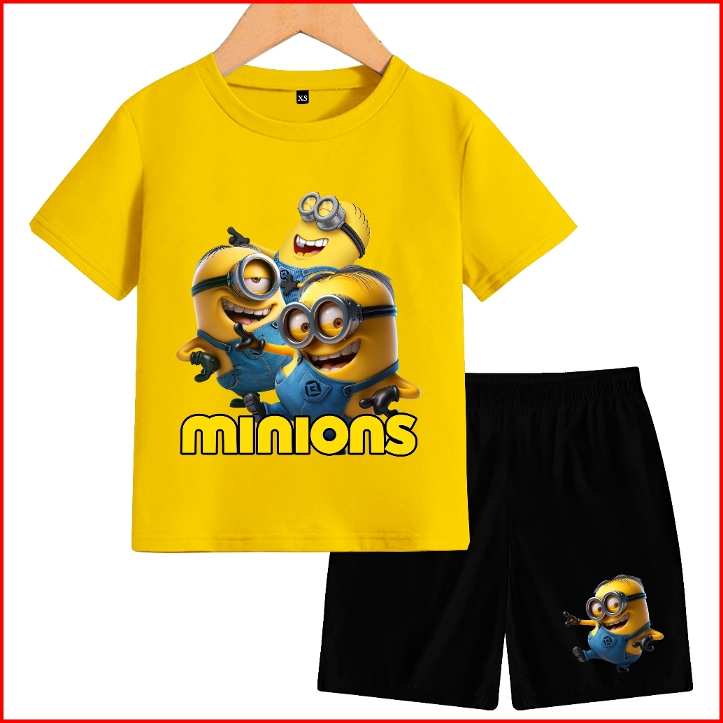 Setelan Anak Anak Motif Minions Lengan Pendek Celana Pendek