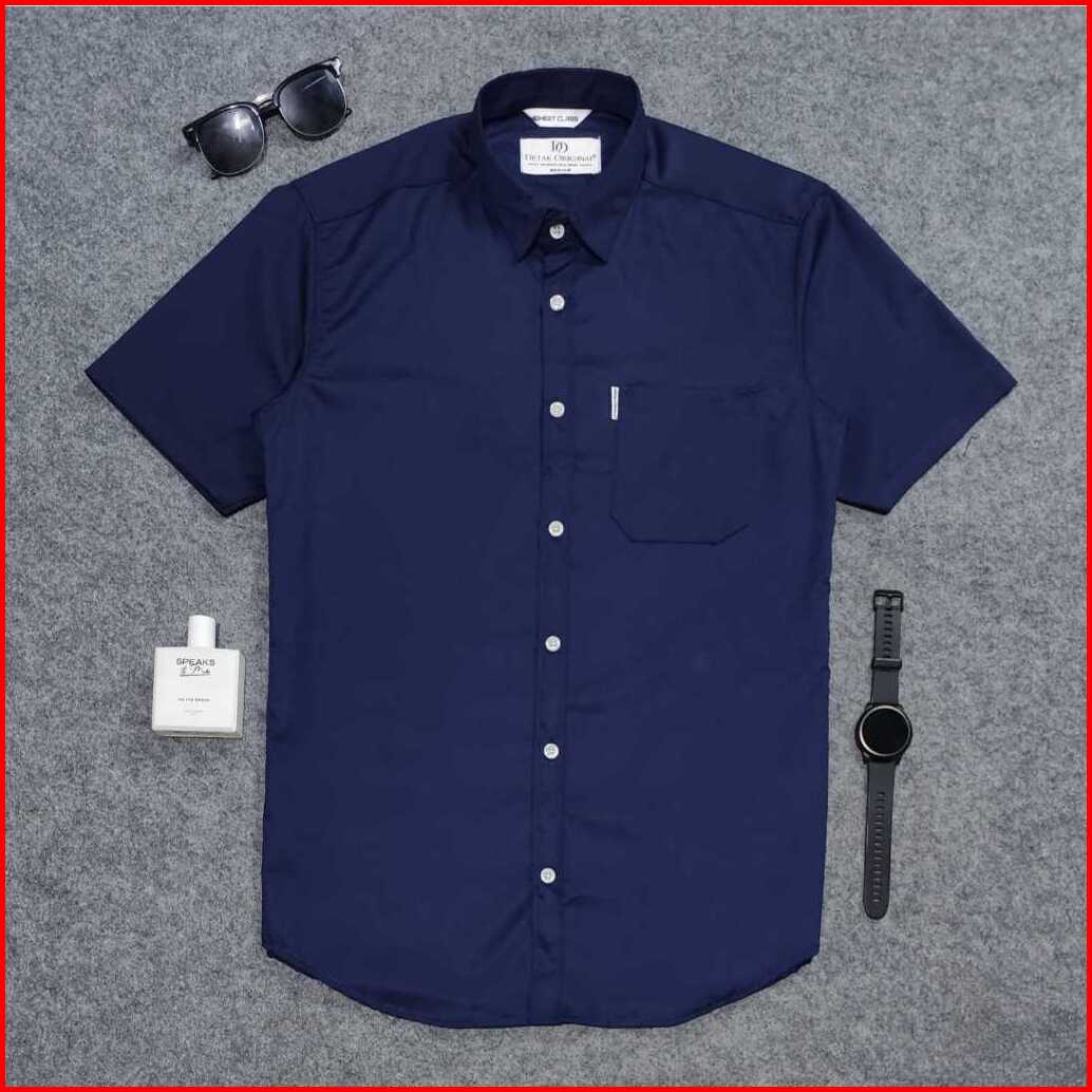 Detak Original Kemeja Twill Polos Premium Lengan Pendek Pria Navy Casual Slimfit