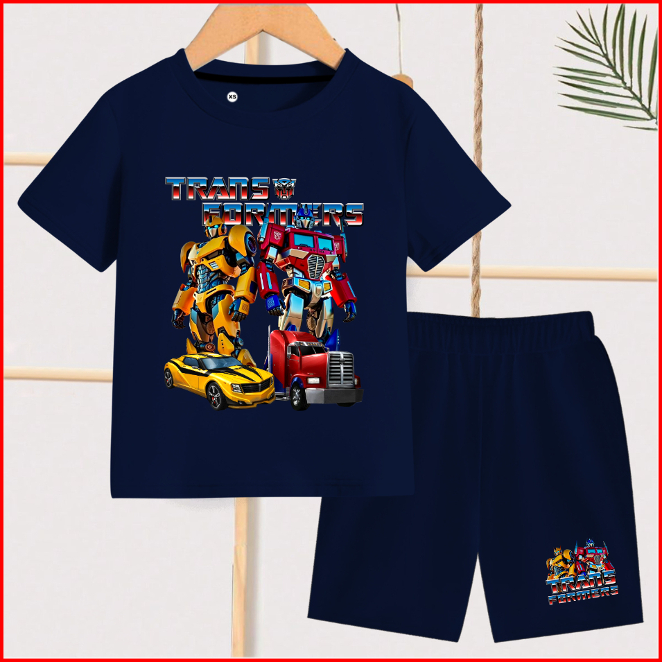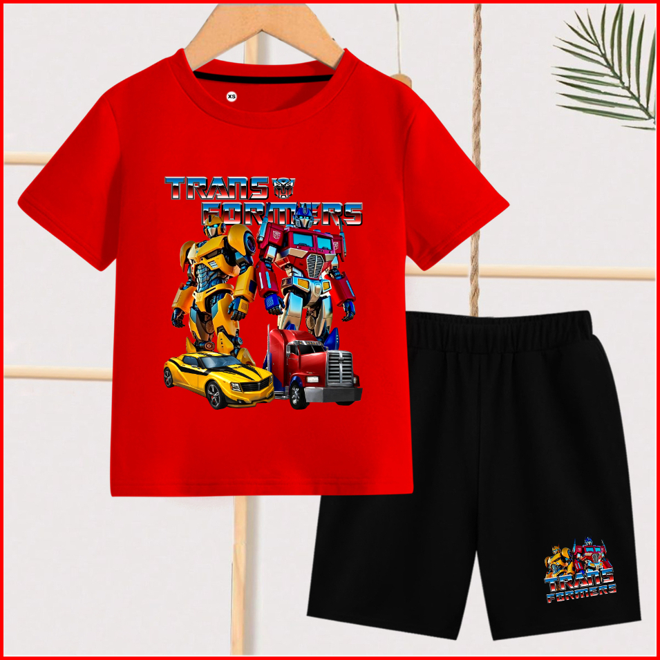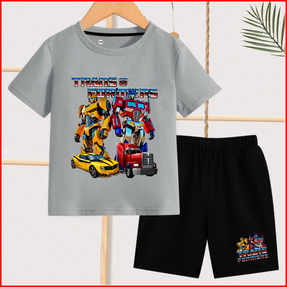 Setelan Anak Anak Motif Trans Formers Lengan Pendek Celana Pendek Cowok