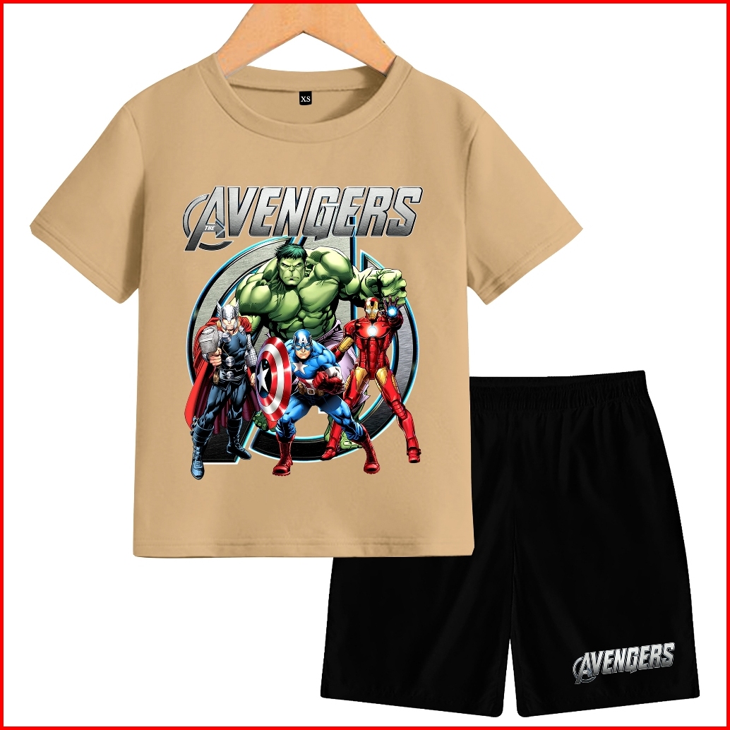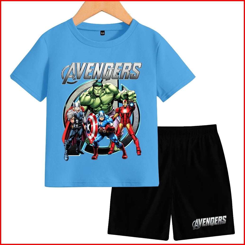 Setelan Anak Anak Motif Advangers Lengan Pendek Celana Pendek Cowok