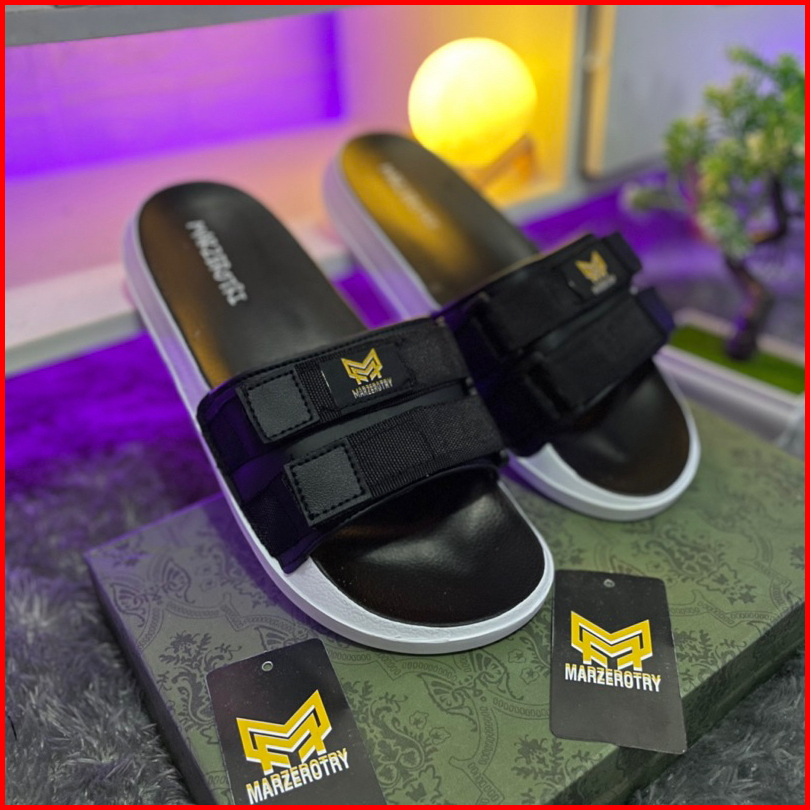 Marzerotry 01 Sandal Pria Distro Casual Black Gray Sandal Slide Anti Licin Free Paperbag