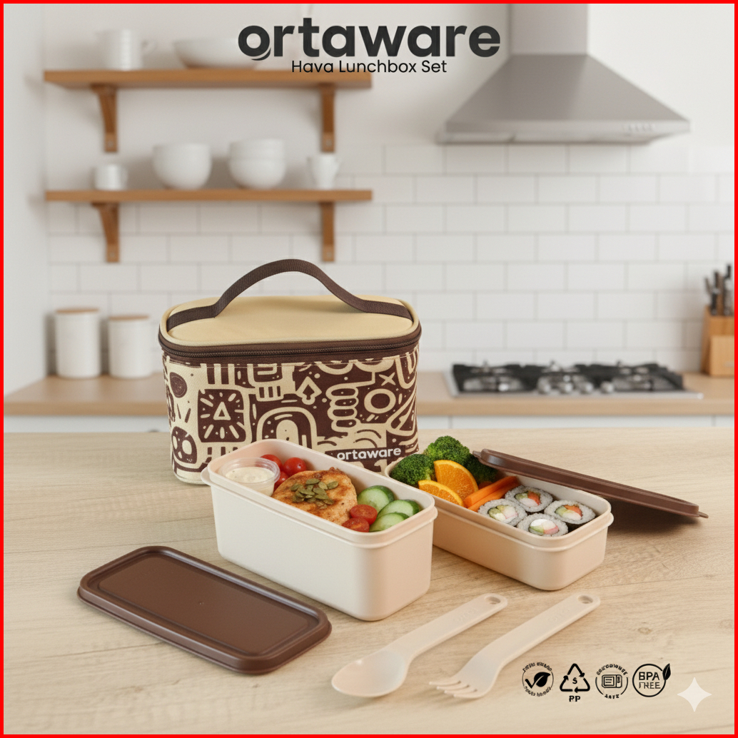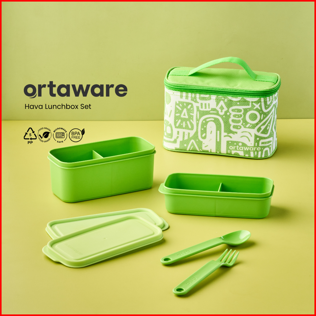 Hava Lunchbox Set X Buncah Ortaware Tas Tempat Bekal 2 Sekat Sendok Garpu Bpa Free Microwave Safe