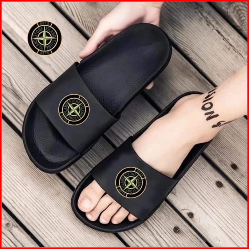 Sandal Slop Stone Island Sandal Flip Flop Kekinian Pria Dan Wanita Sandal Slip On Anti Air Empuk Dan Ringan Sandal Casua