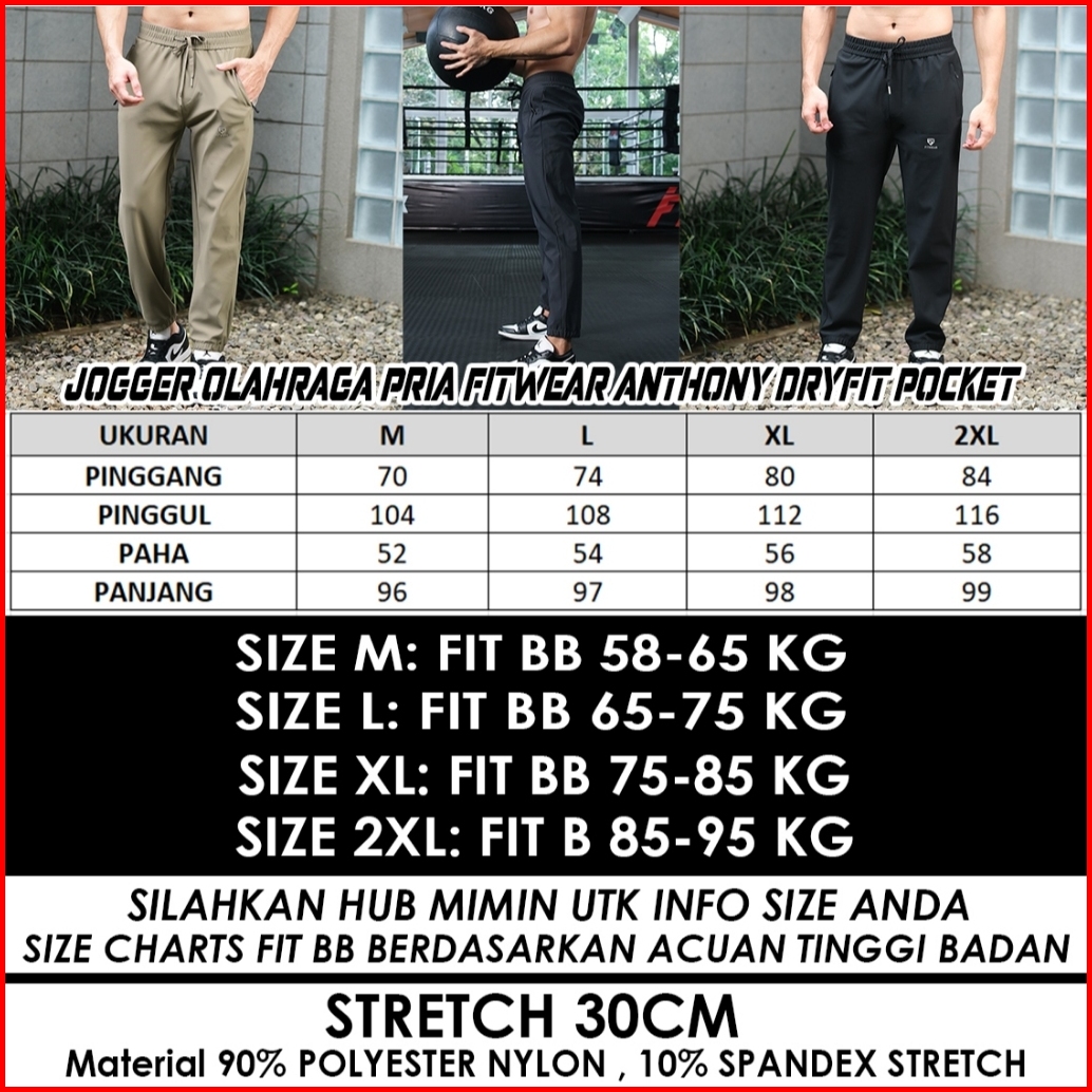 Fitwear Jogger Olahraga Pria Anthony Stretch Dryfit Pocket - M - Xxl