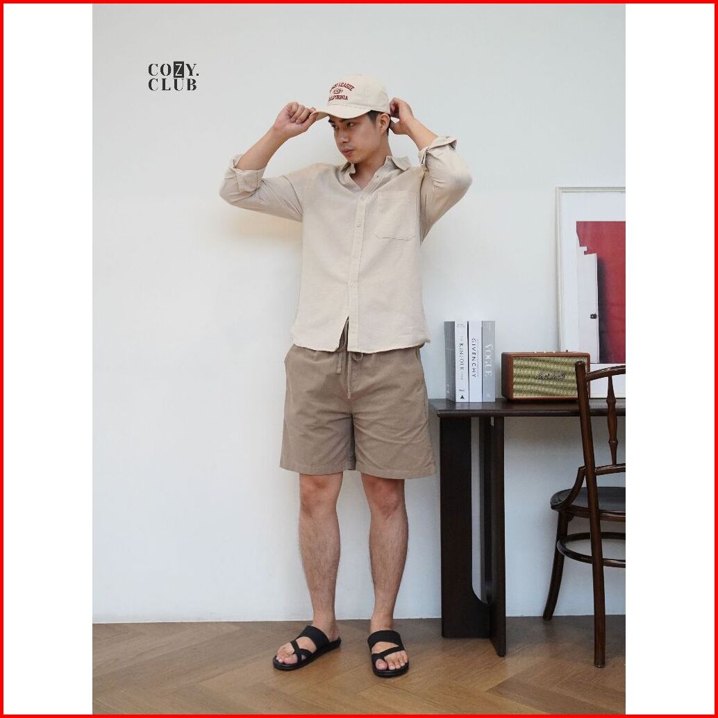 Cozyclub Linen Short Pant Celana Pendek Linen Pria Pinggang Stretch 971