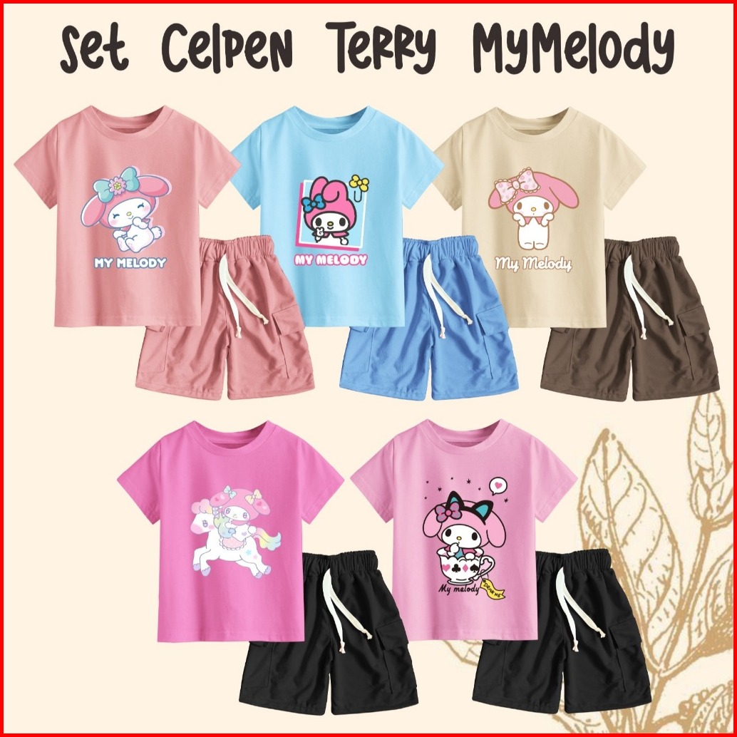 One Set Terry Pendek Anak Perempuan Edisi My Melodi Series