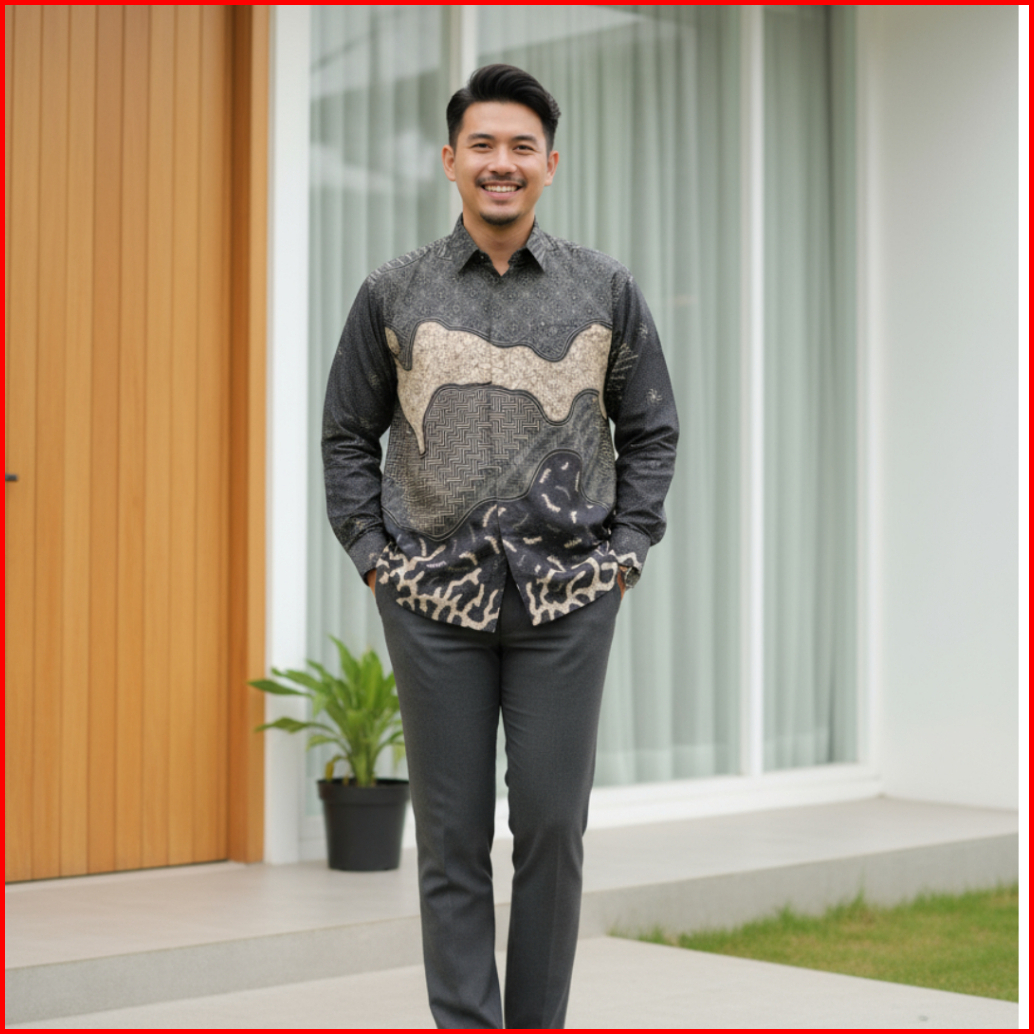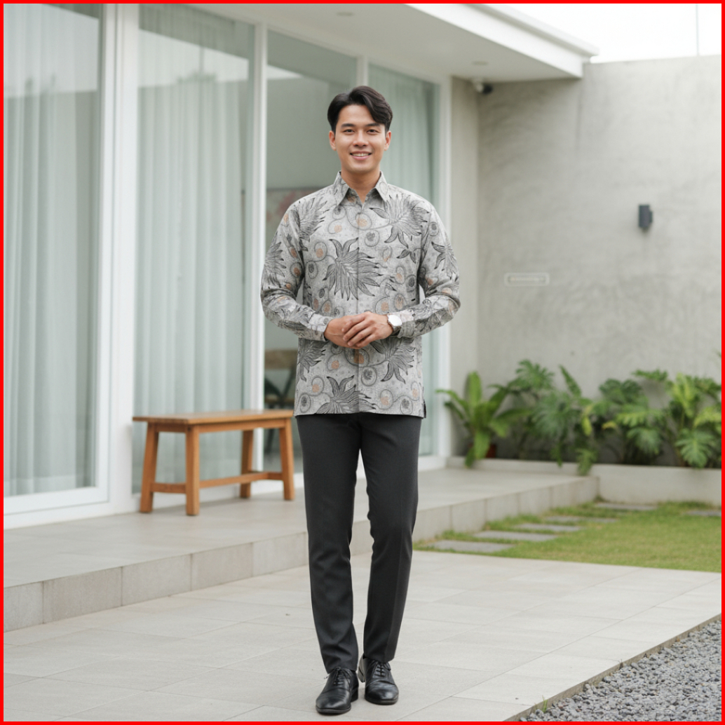 Dinanow Kemeja Batik Pria Lengan Panjang