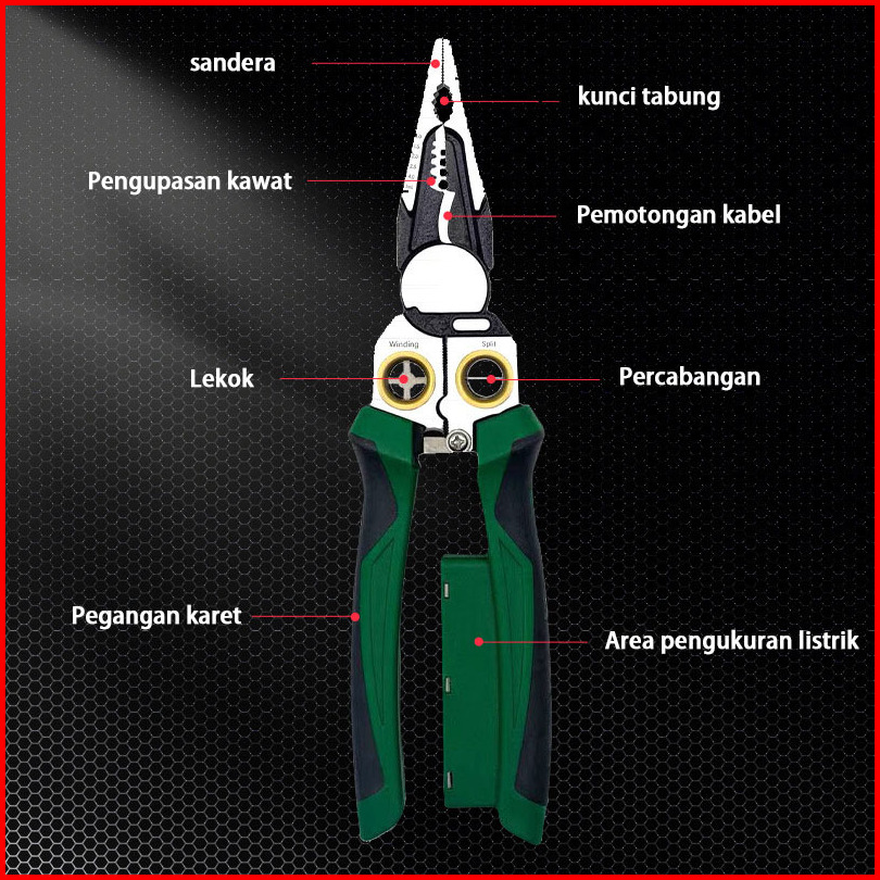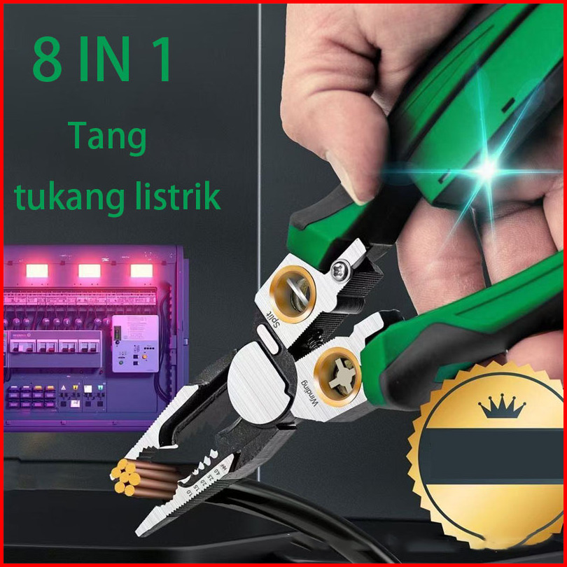 Tang Kabel Tespen Multifungsi 8in1 Kupas Potong Crimping Jepit Lilit Kabel Listrik Tebal Hidung Panjang Tang Elektrikal