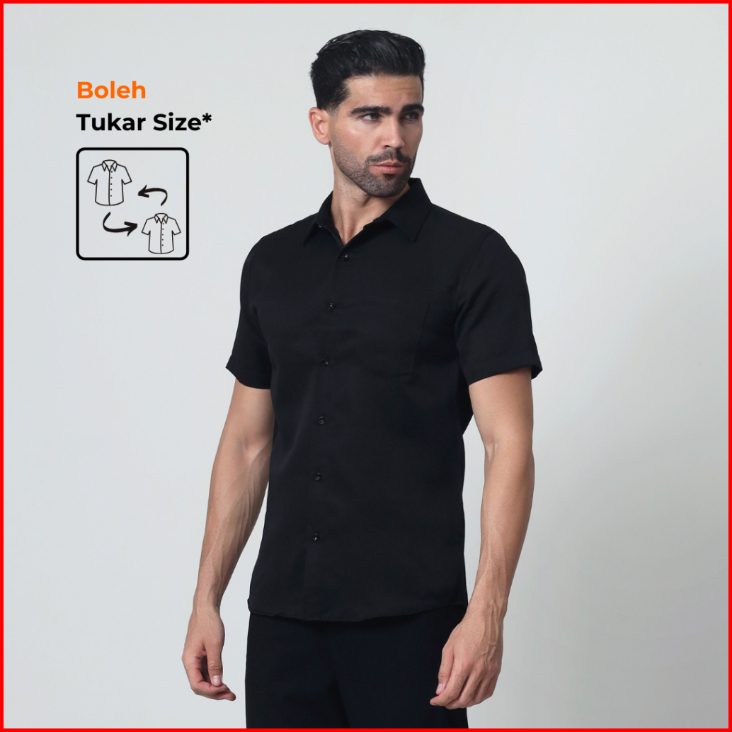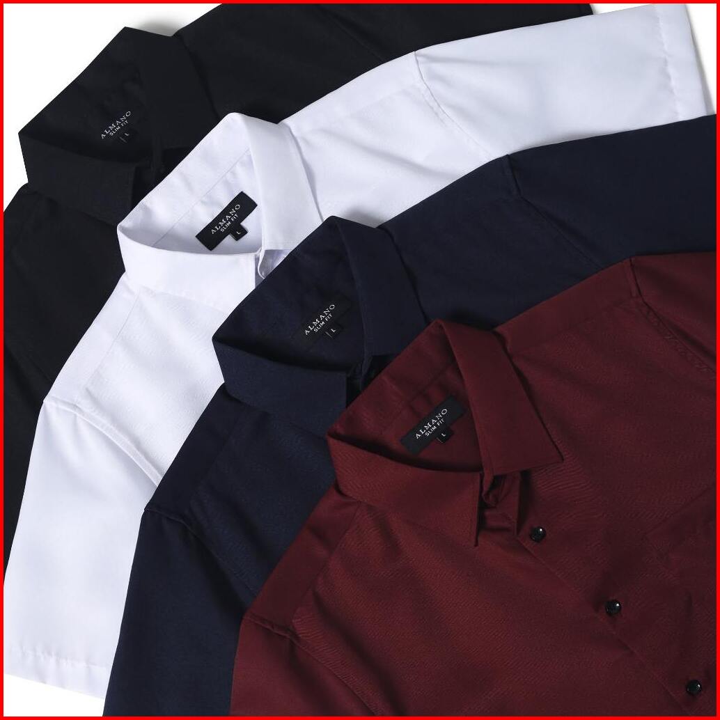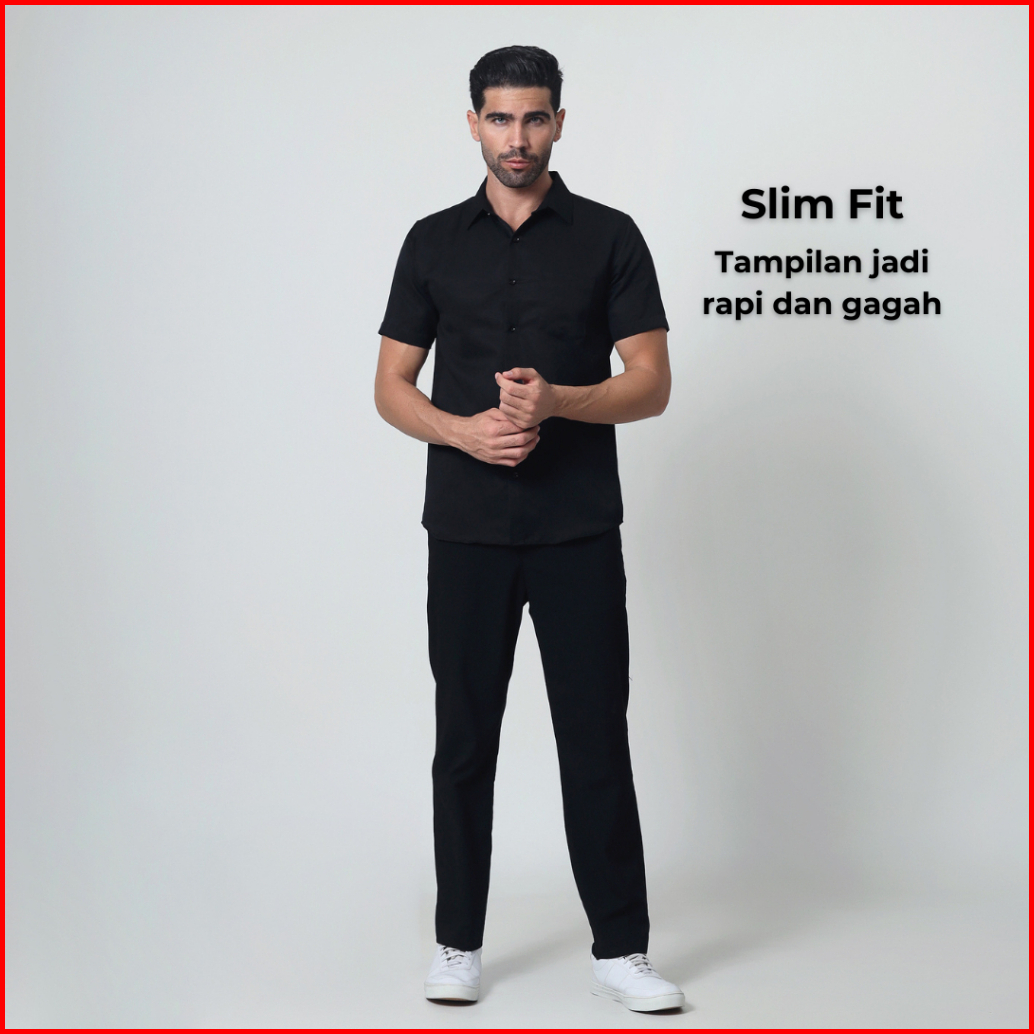 Almano Oxford Shirt Ss Black Kemeja Pria Slim Fit Polos Pendek Hitam