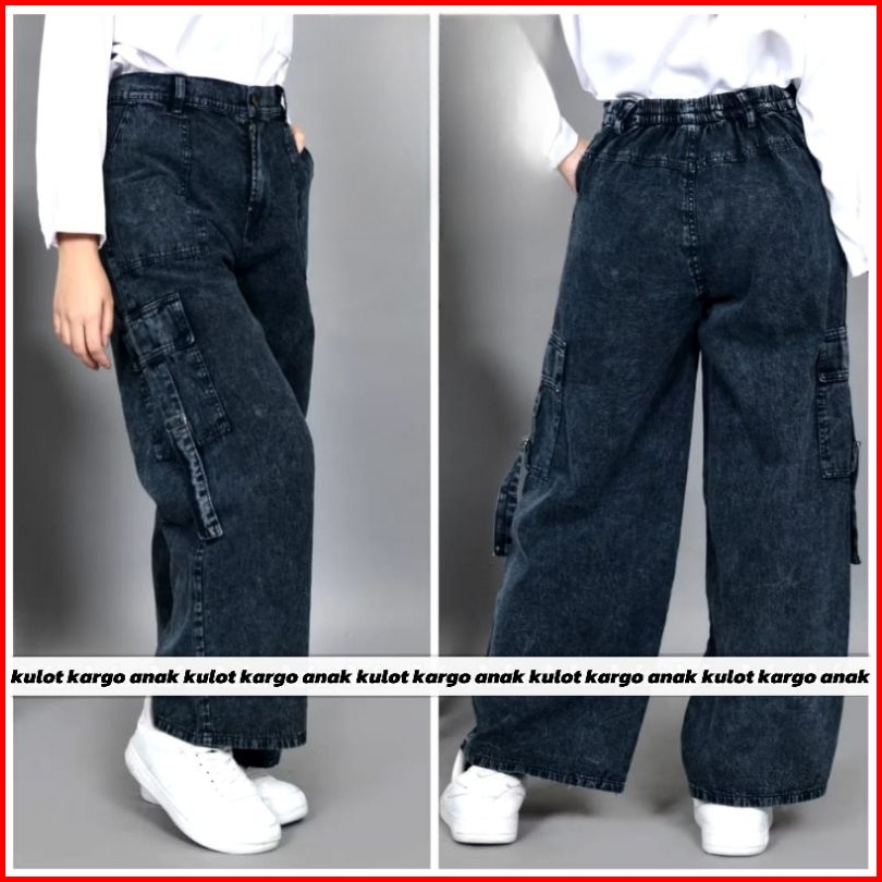 Celana Jeans Kulot Cargo Anak Perempuan Usia 10 17 Tahun