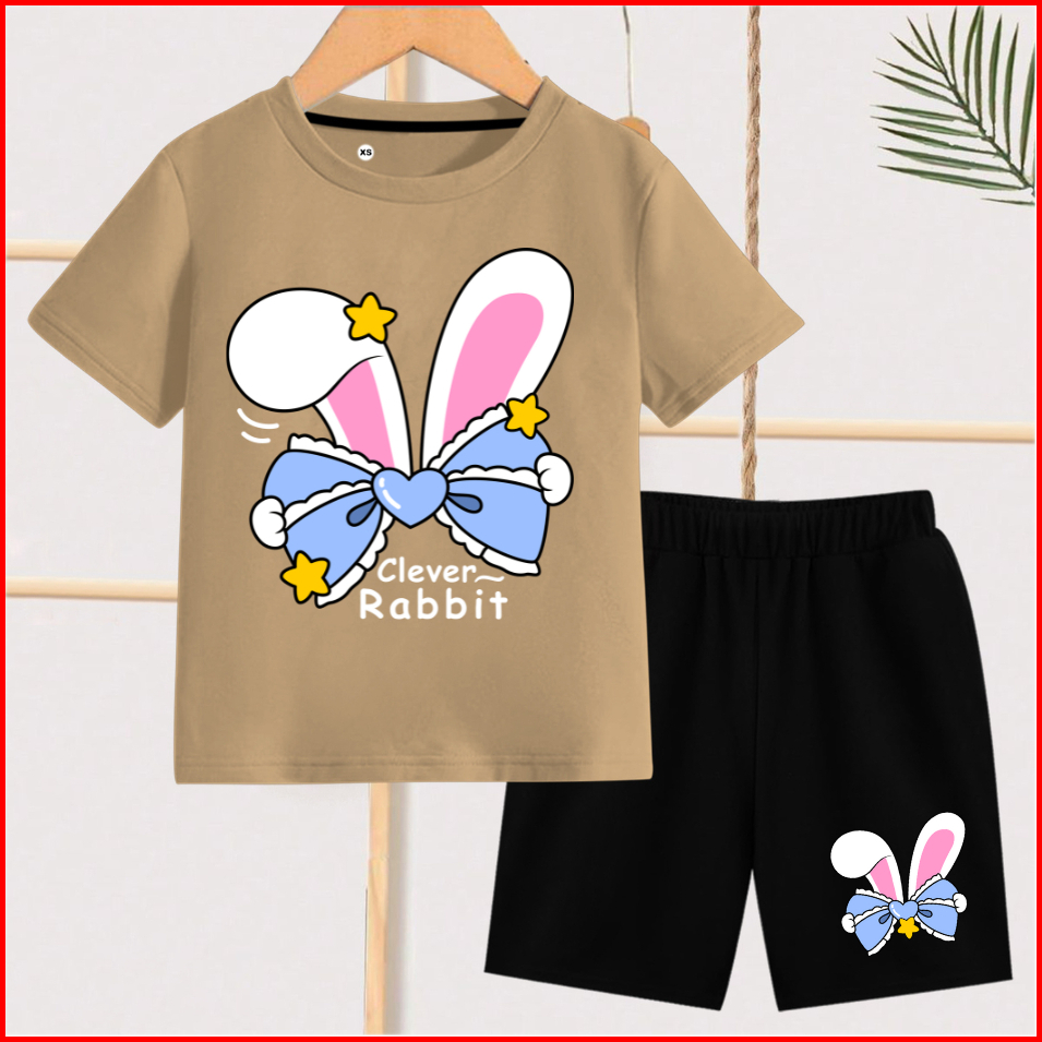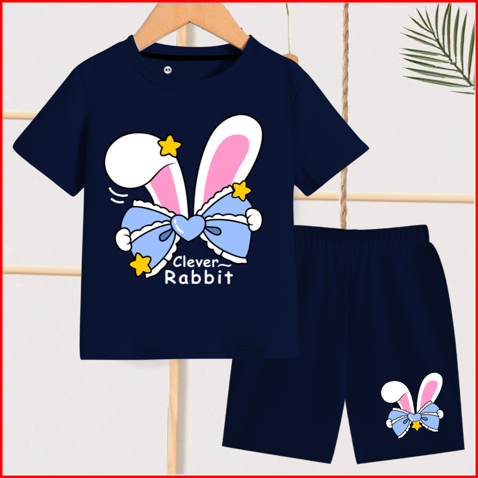 Samjaya Baju Setelan Anak Perempuan Baju Anak Lengan Pendek Bahan Katun Motif Rabit Pita Umur 1-13 Tahun Clever Rabbit S