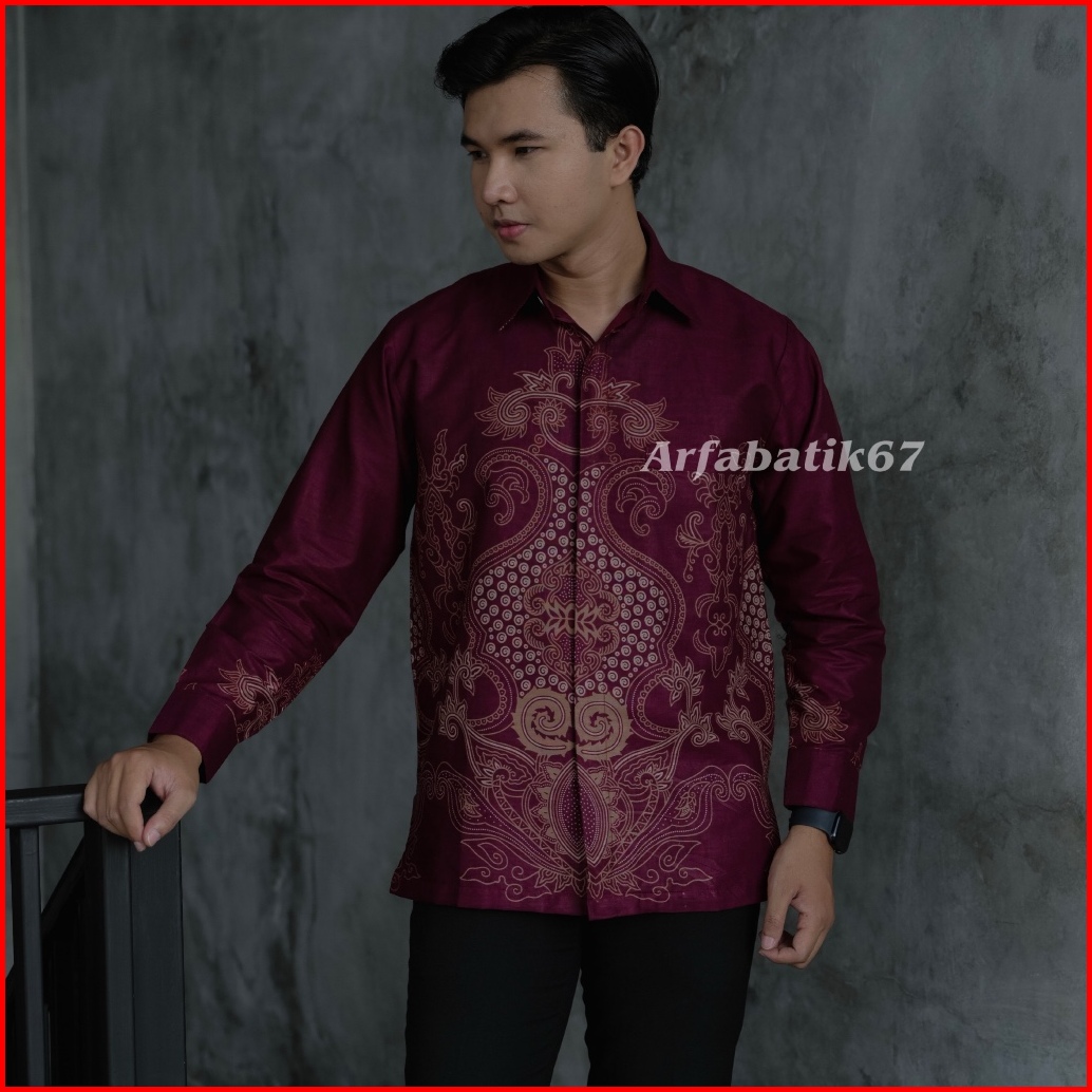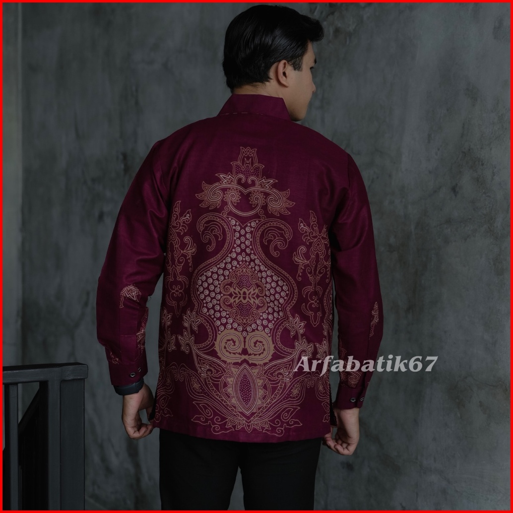 Sadewa Merah Burgundy Kemeja Batik Pria Lengan Panjang Katun Prima Premium Lapis Furing Hero Ready Seragaman By Arfabati