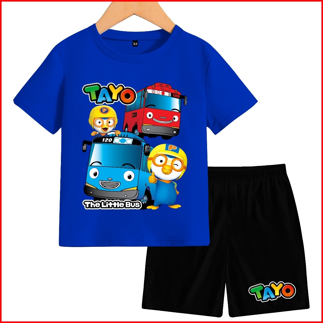 Setelan Anak Anak Umur 1-13 Tahun Cowok Cewek Motif Tayo Lengan Pendek