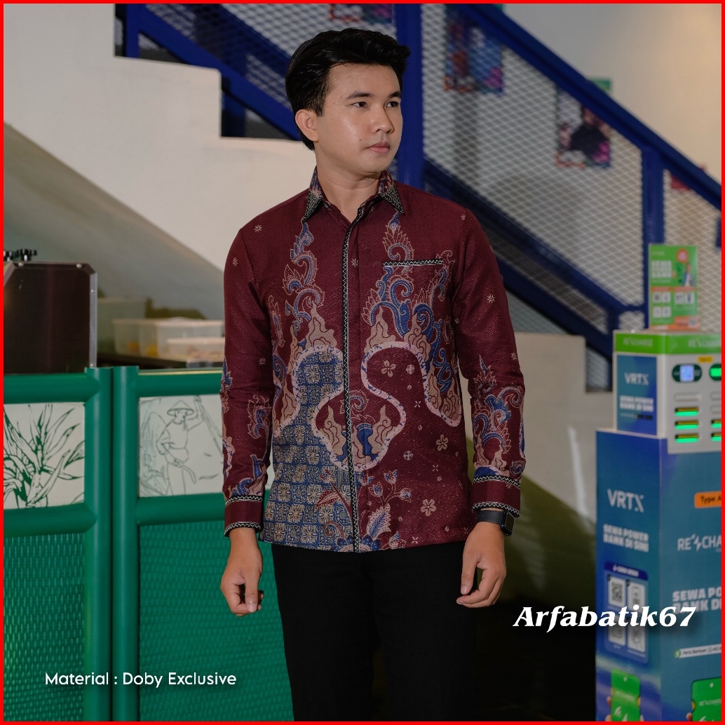 Exclusive Smock Doby Free Box - Kemeja Batik Pria Smock Exclusive Lengan Panjang Doby Solo Exclusive Lapis Full Furing W