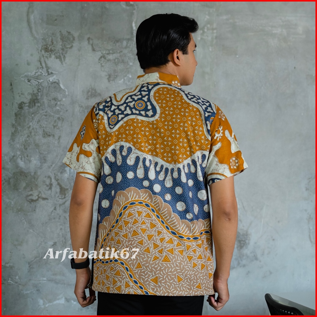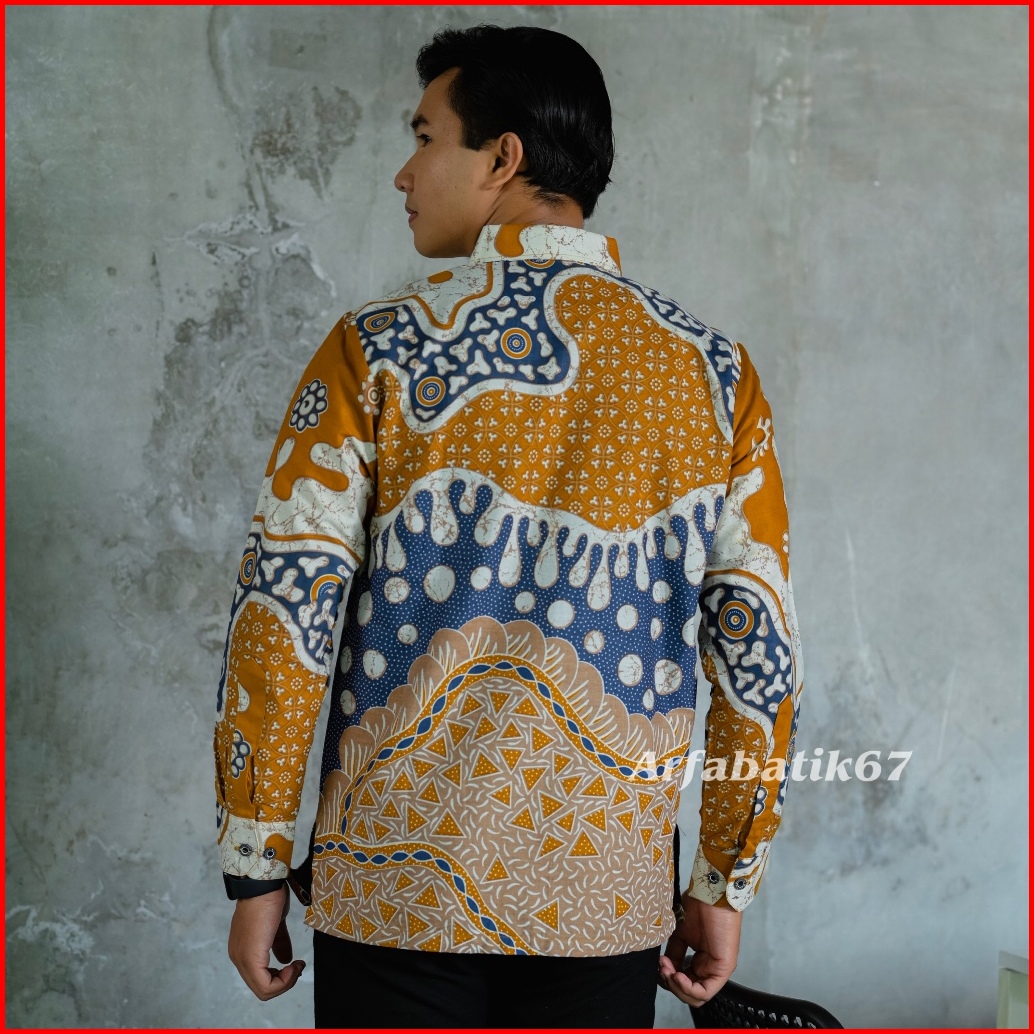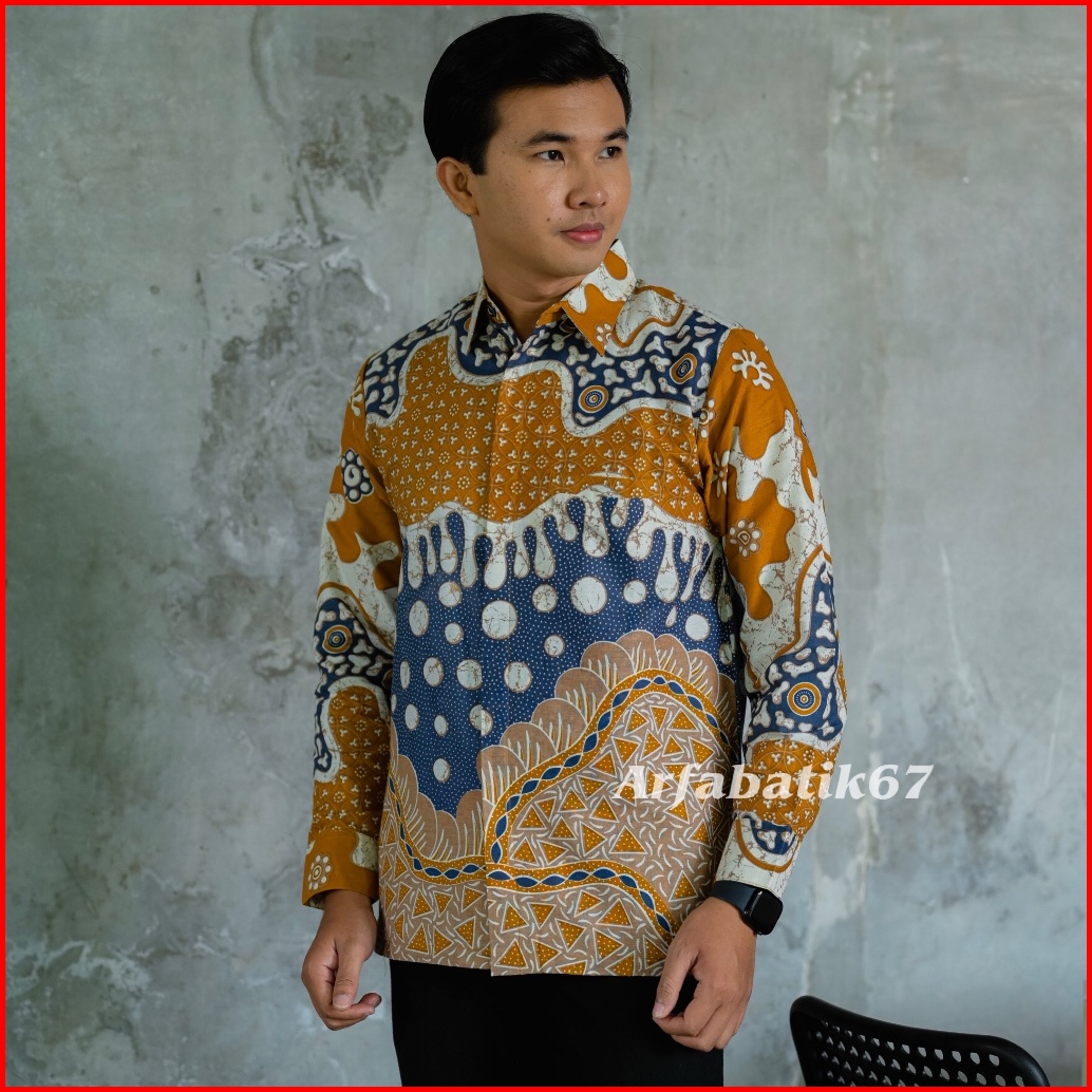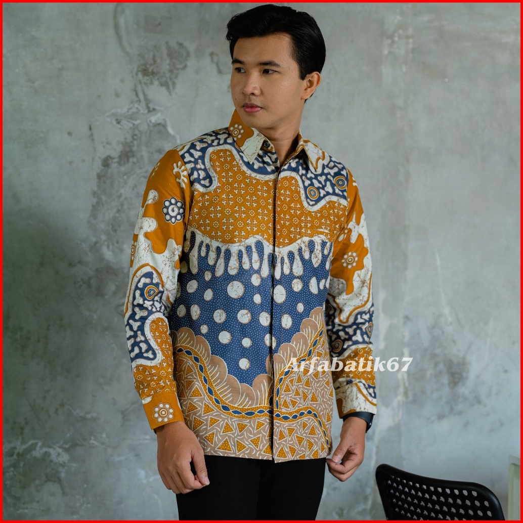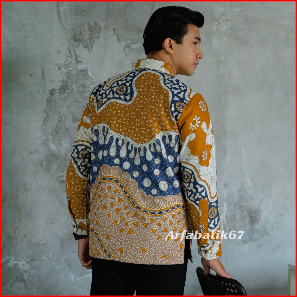 Mustard Denim Kemeja Batik Pria Lengan Panjang Katun Prima Premium Lapis Furing Hero Ready Seragman By Arfabatik67